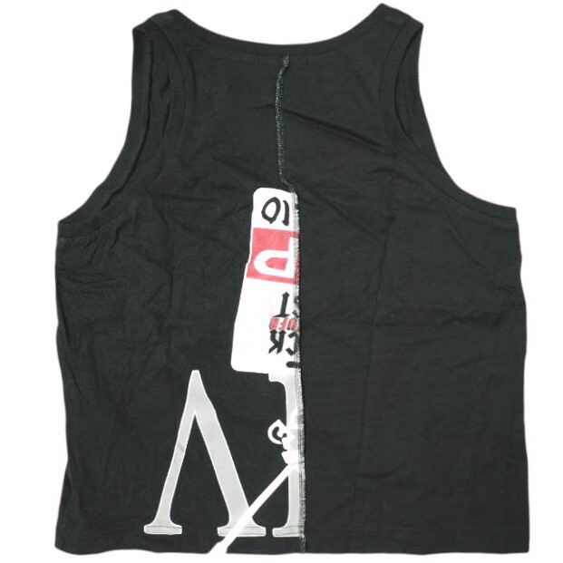 左右で異なるアイテムを組み合わせた独創的なタンクトップです。