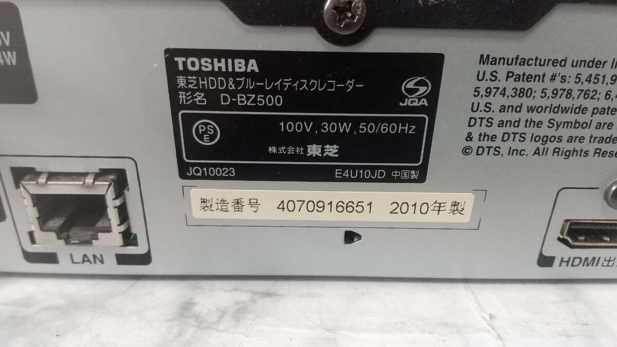 K3554 TOSHIBA REGZA D-BZ500 2010年製 ブルーレイレコーダー/東芝/ 通電&起動OK その他不具合あり 現状品 JUNK