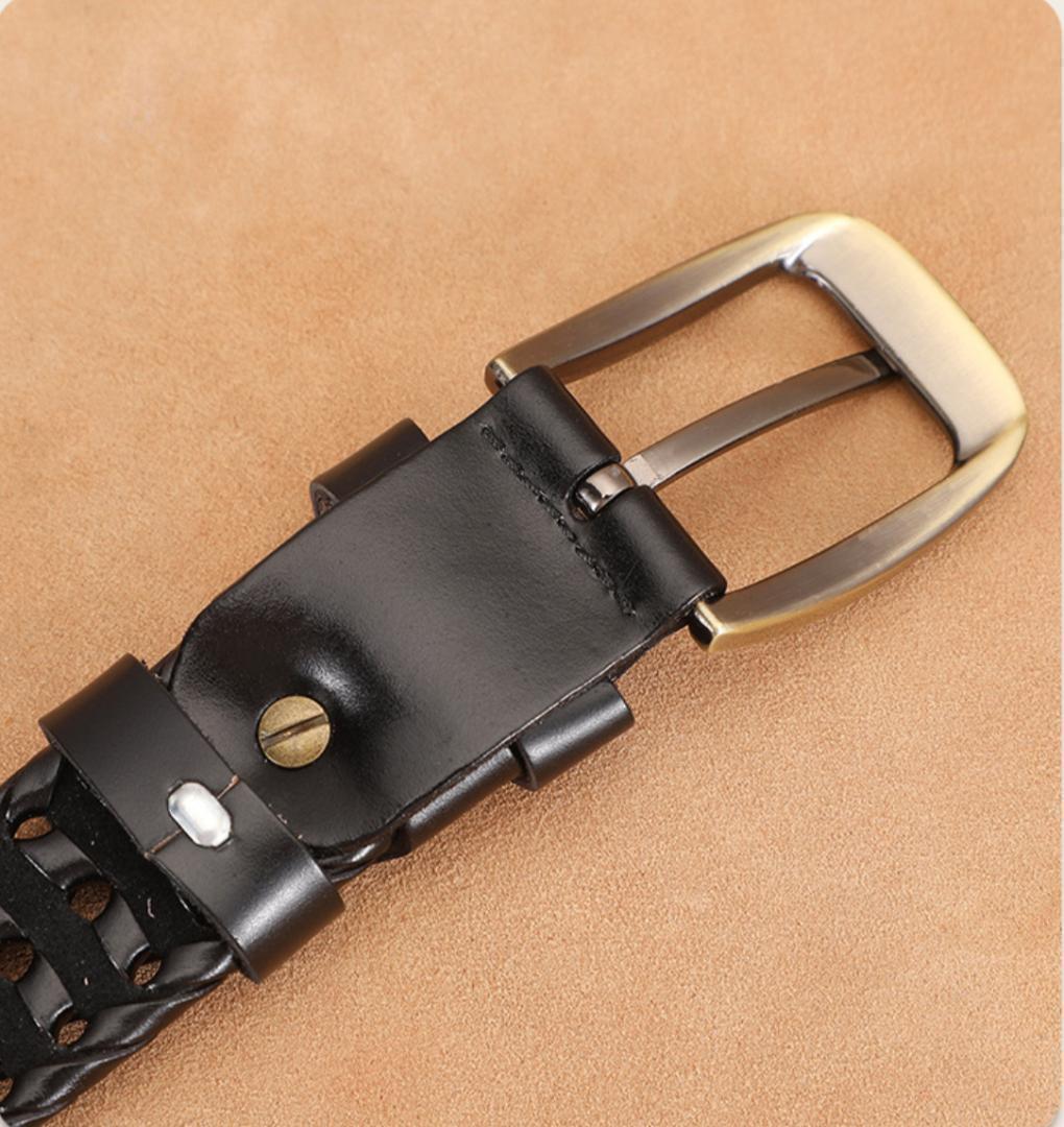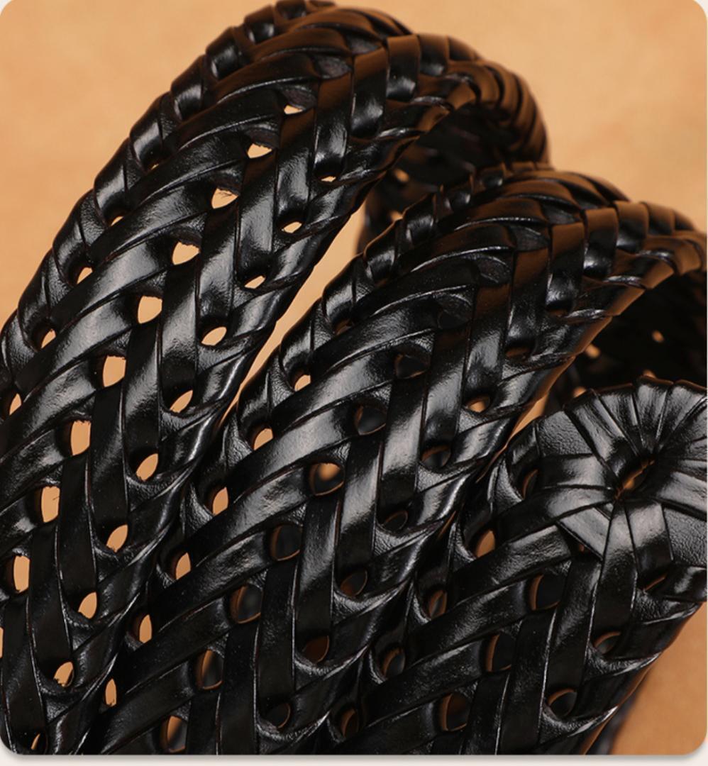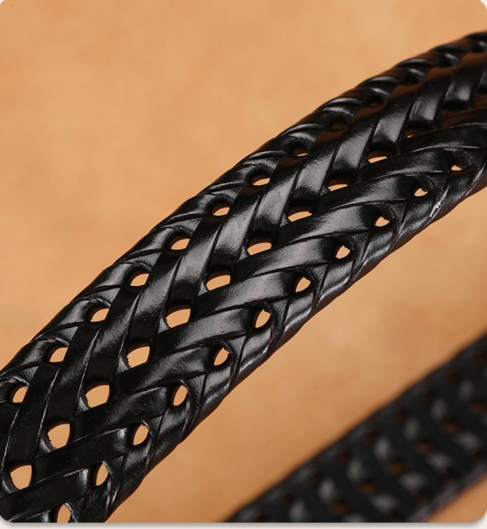 しっかりと存在感ある編み込みベルト、先端に至るまで美しい装飾が魅力、機械では難しい編み込みの行程を手作業で行った高品質タイプです。リアルレザーならでは上品な手触りとツヤ感をお楽しみください。