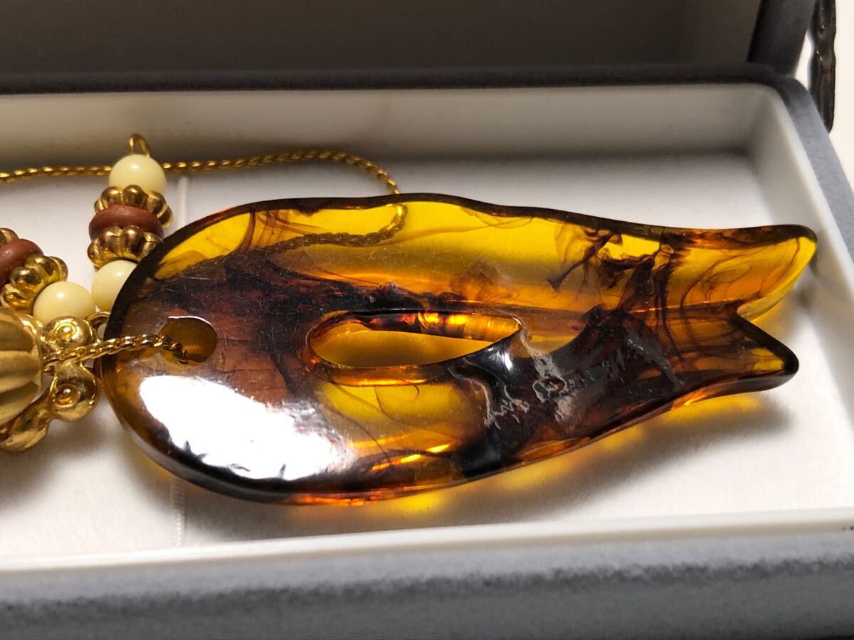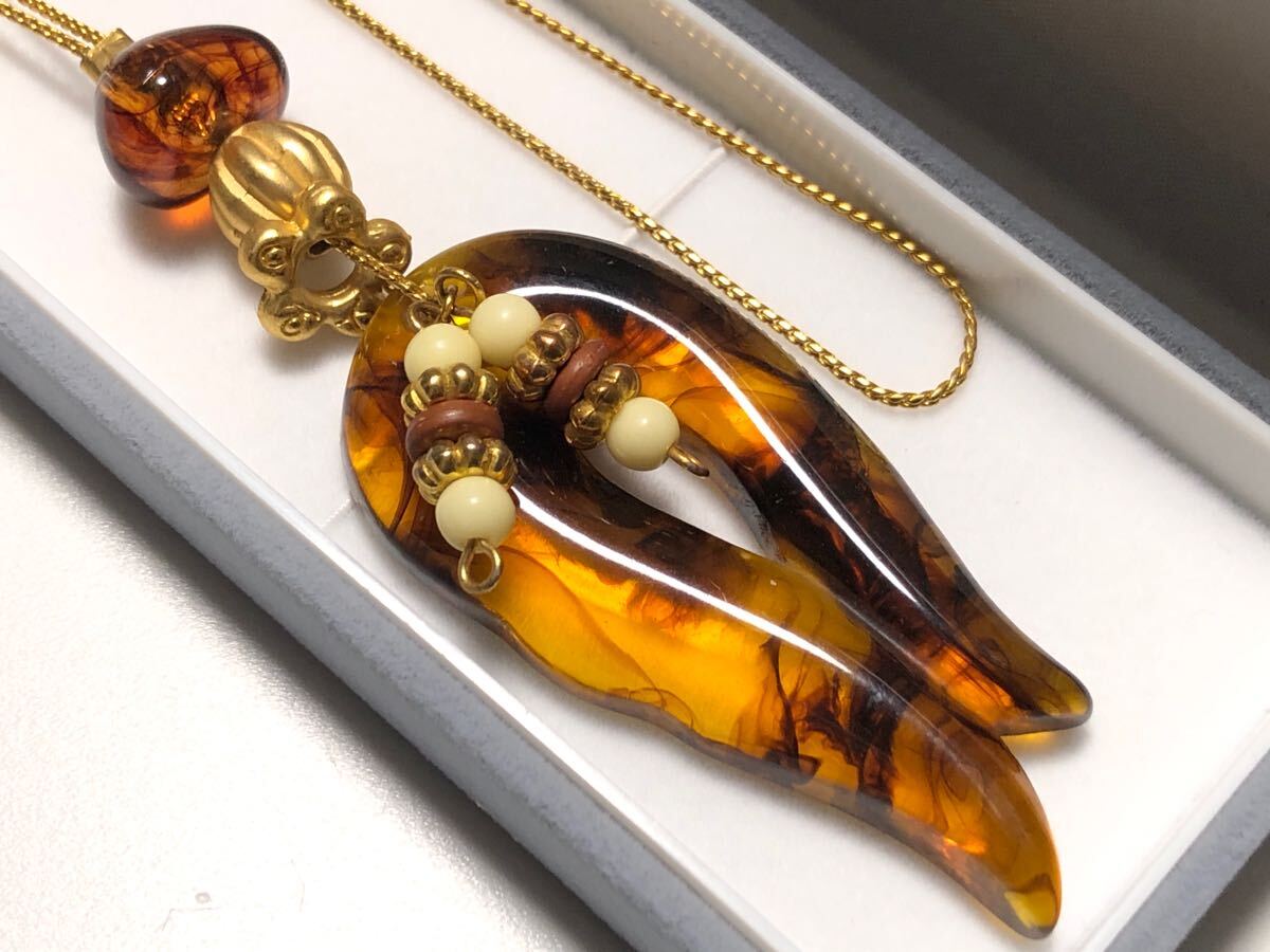 鼈甲風(樹脂)に仕上げた、デザインペンダントネックレスです。