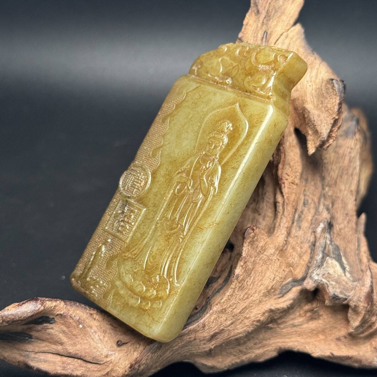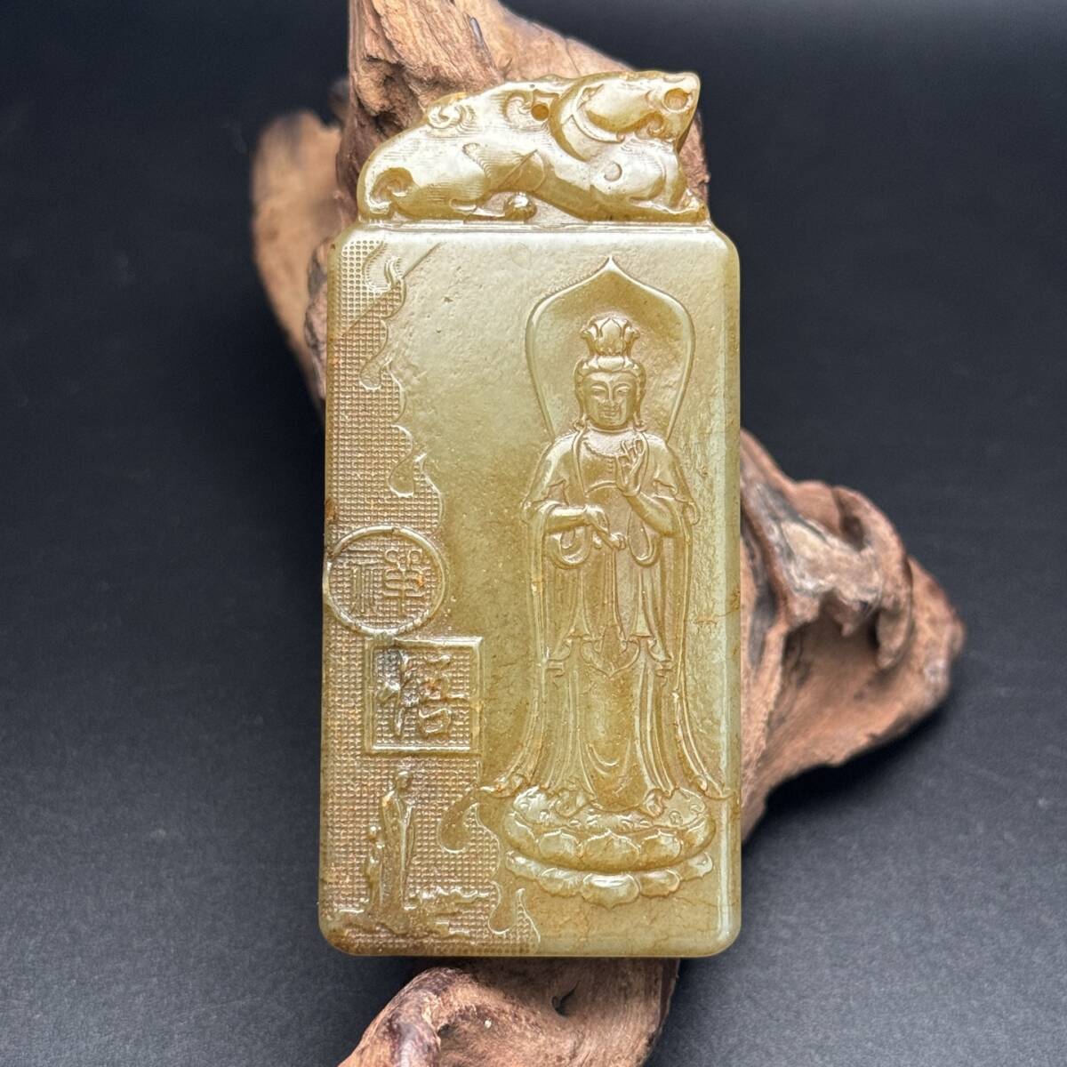 *珍品旧蔵* 清 玉彫 和田玉 觀音玉牌 大慈大悲 普度衆生 牌型美觀 玉質温潤 包漿醇厚 骨董品 置物 唐物 古美術品 中国古玩 古美味 H45