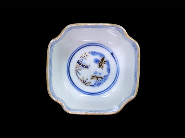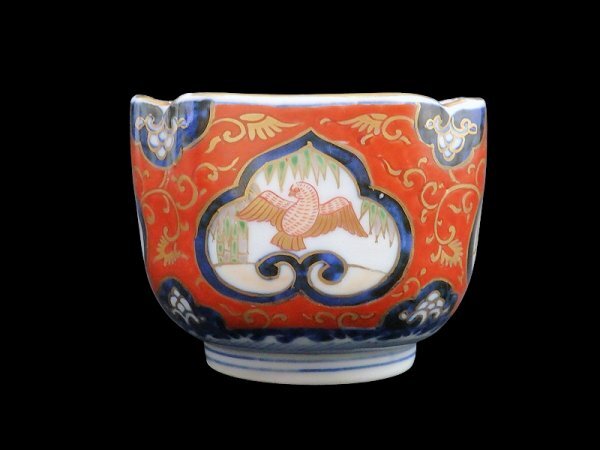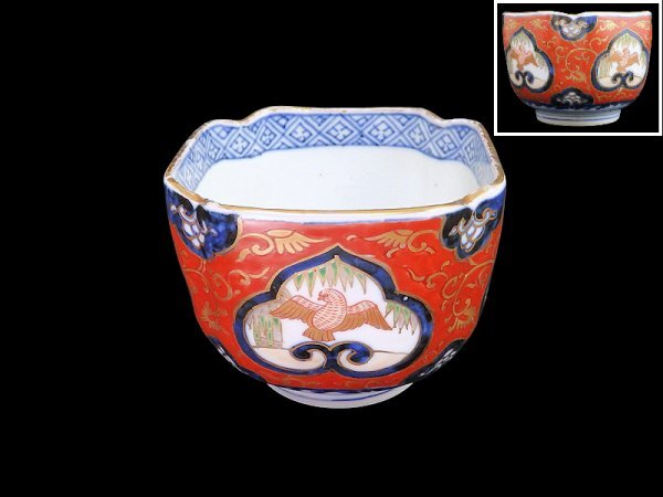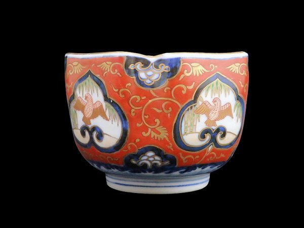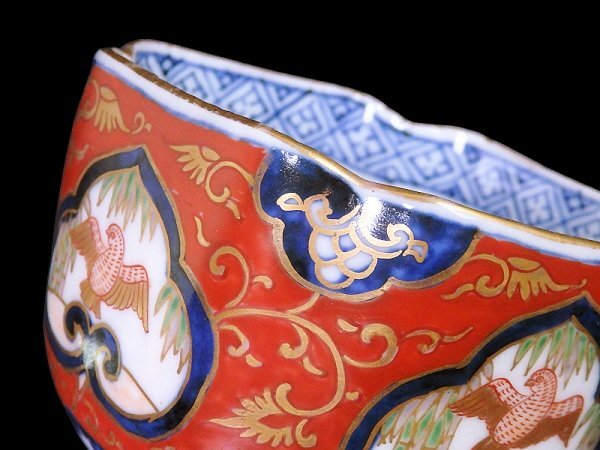 fbtu-031mS 大聖寺伊万里 金襴手 窓絵 竹笹に雀 金唐草の図 向付