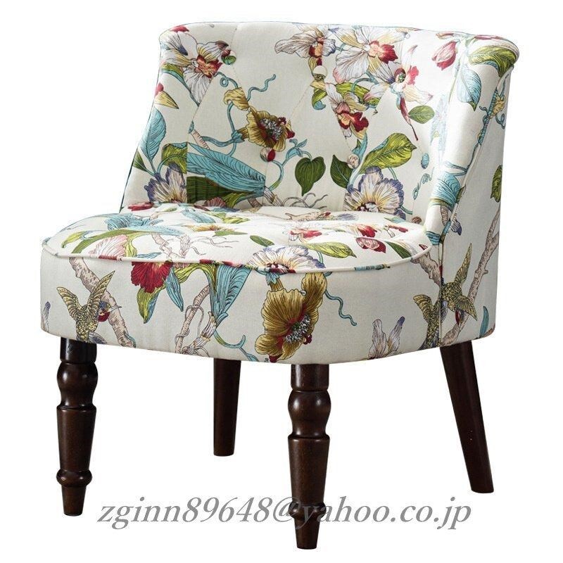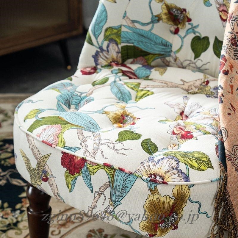 高貴な カラフル 花柄 かわいい 無垢材 シングルソファチェア 北欧 ヨーロッパ スタイル おしゃれ 一人掛け フラワーデザイン ゆったり