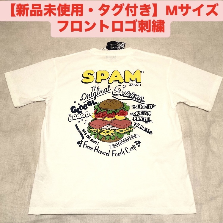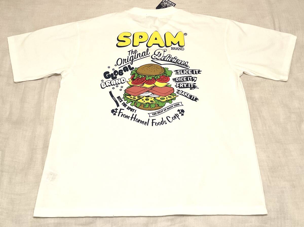 アメカジ 沖縄 SPAM スパム スパムバーガー Tシャツ カットソー 白 ホワイト M クルーネック 半袖シャツ メンズ レディース キッズ
