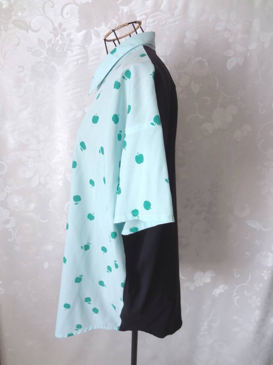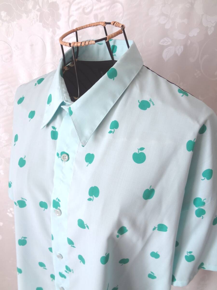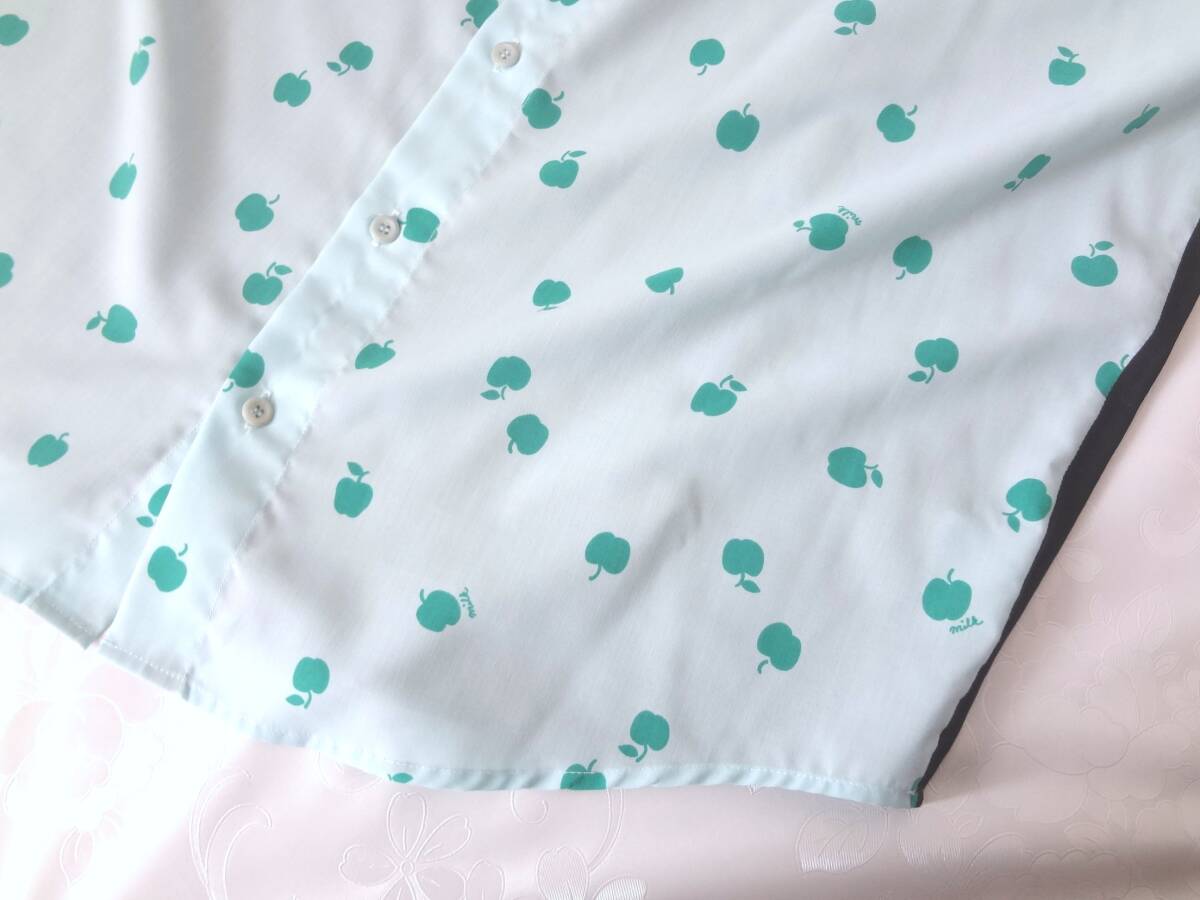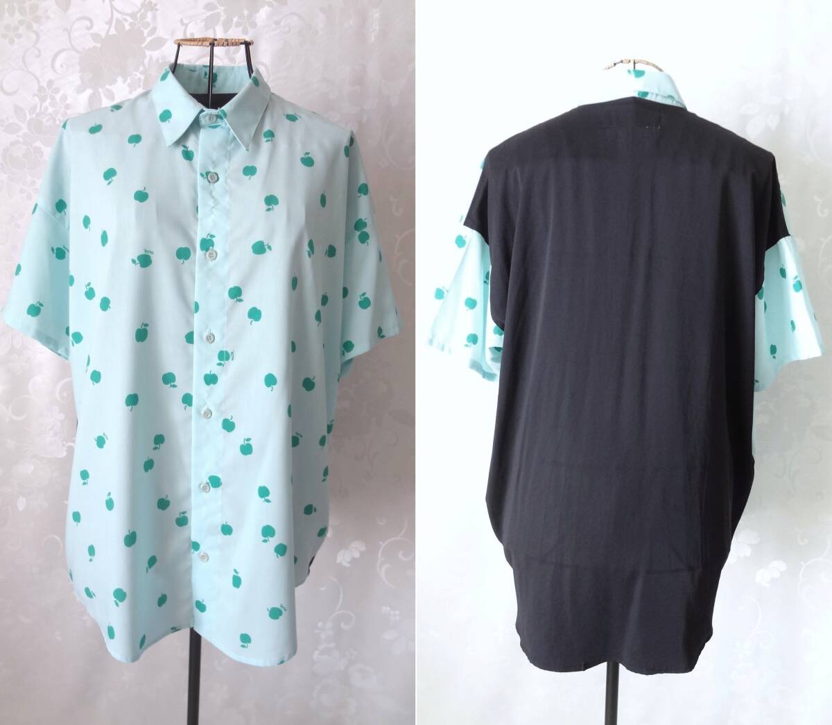 ★MILK BOY 春物 APPLE SHIRTS ミントブルー ミルクボーイ アップルシャツ 半袖シャツ メンズ レディース オーバーサイズ ネイビー 紺