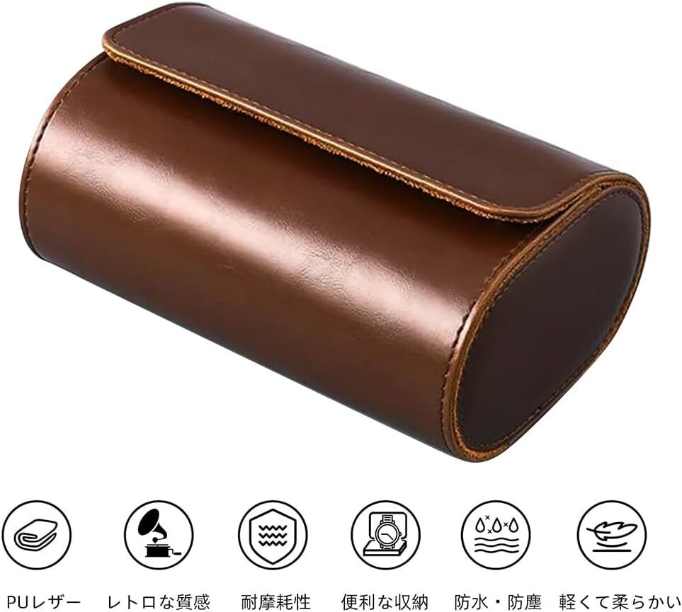 腕時計 ケース 時計ケース ウォッチケース 持ち運び PUレザー ジュエリーボックス 時計収納ケース 2本用 Brown