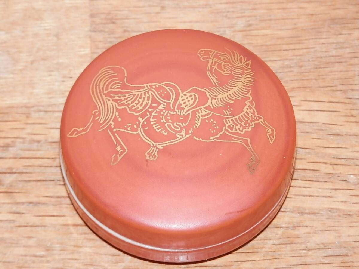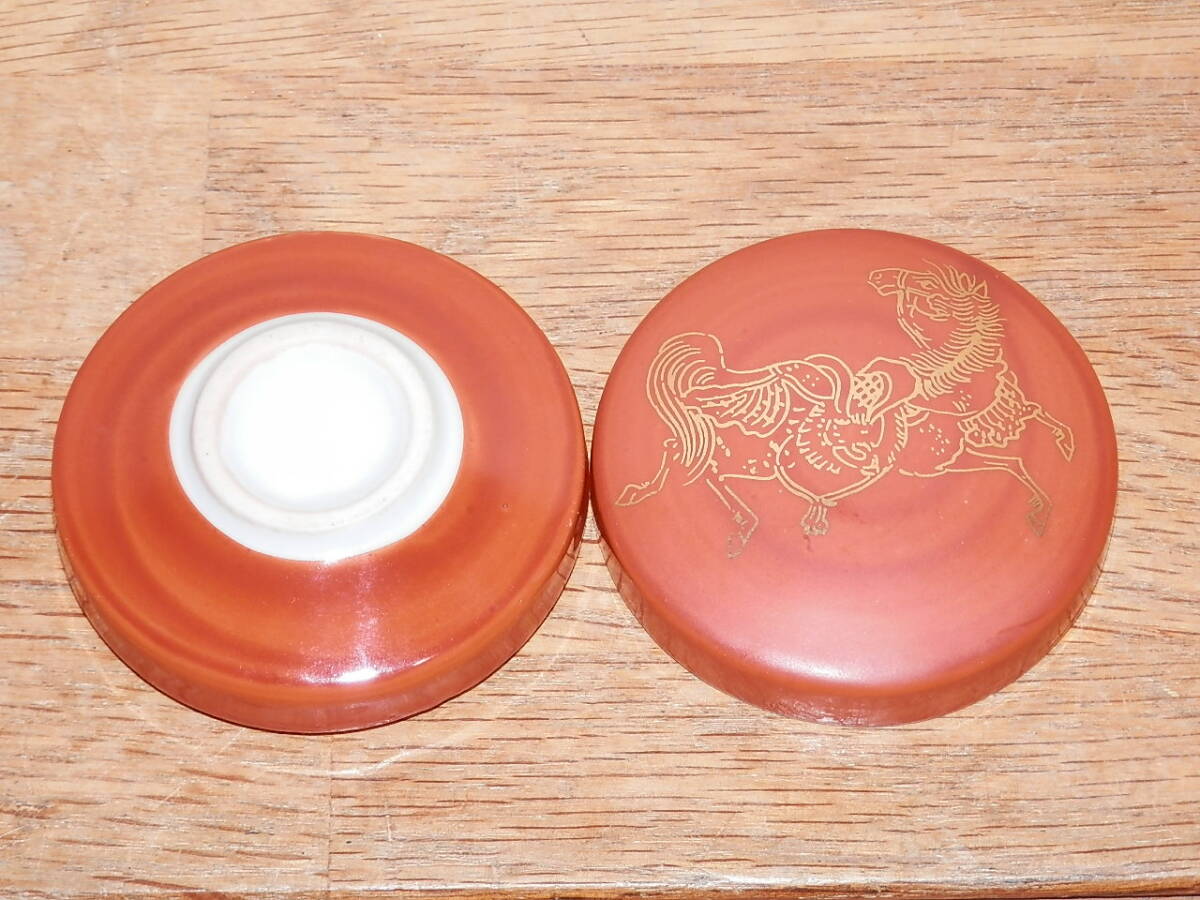 干支香合#51 午年 丸型 赤色 金彩馬絵 6x3cm 無銘 箱なし 陶器(検索 茶道具仏具香蓋合子小物入れ