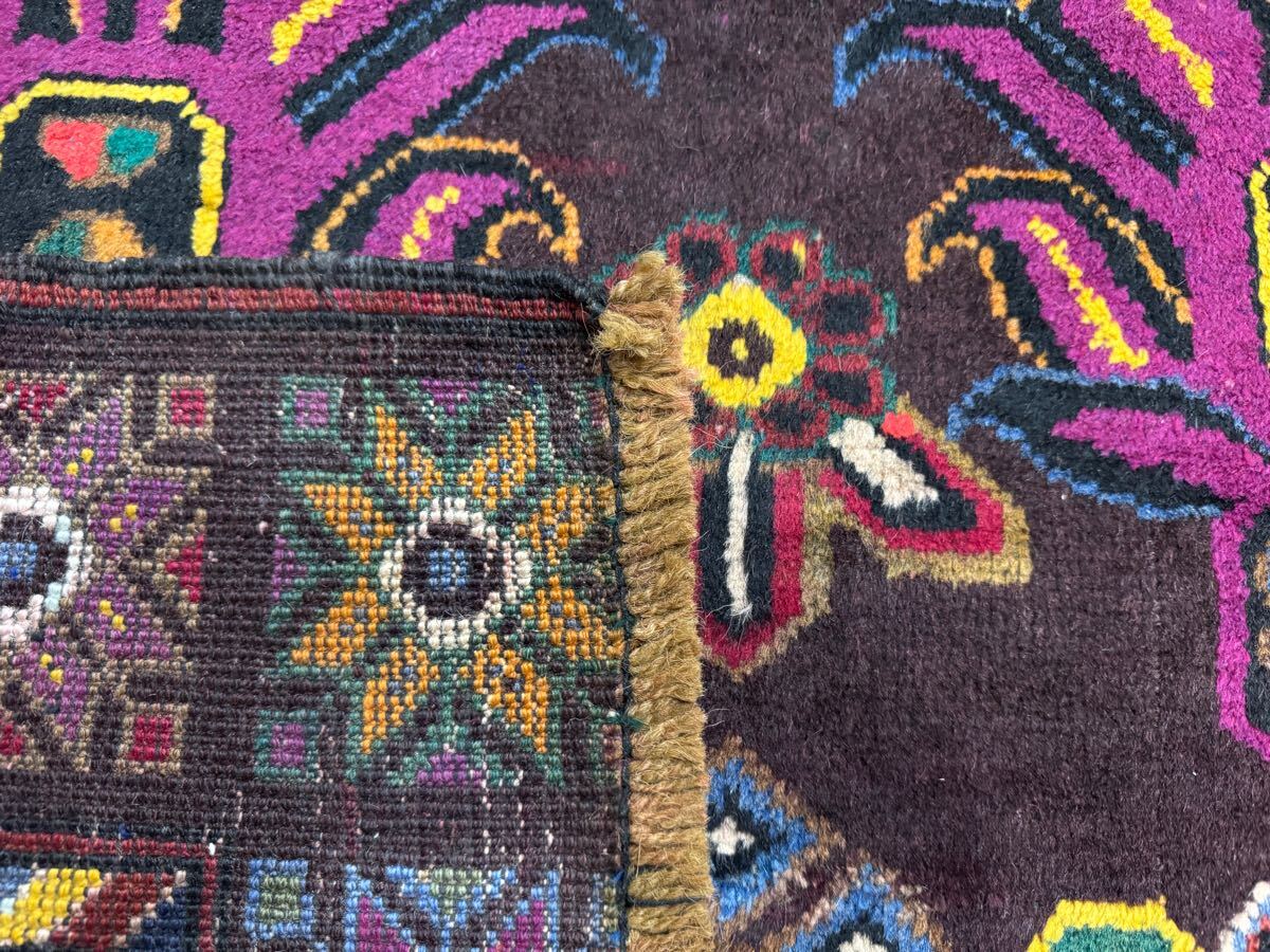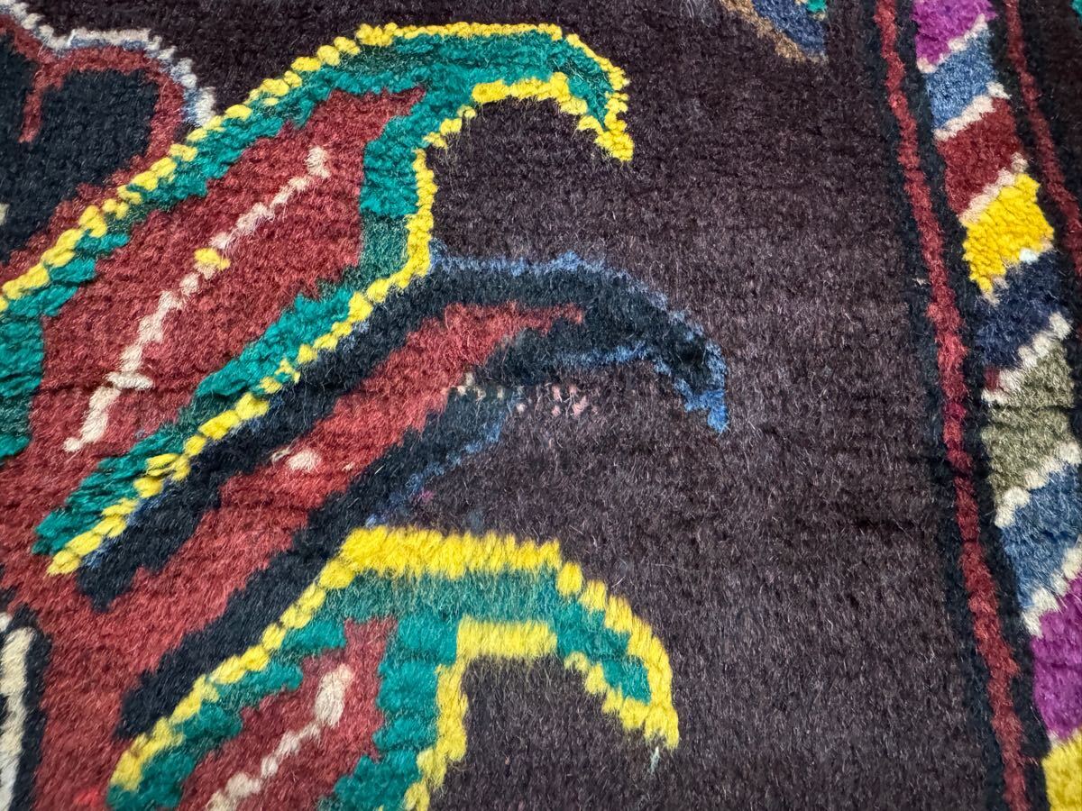 中央に擦れが見られますが、ヴィンテージラグの味としてお楽しみください。写真をご確認ください。