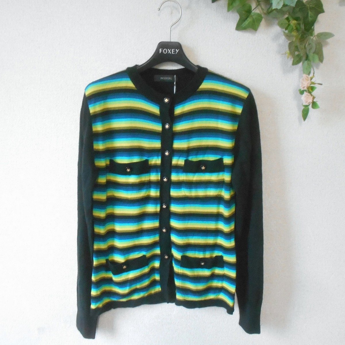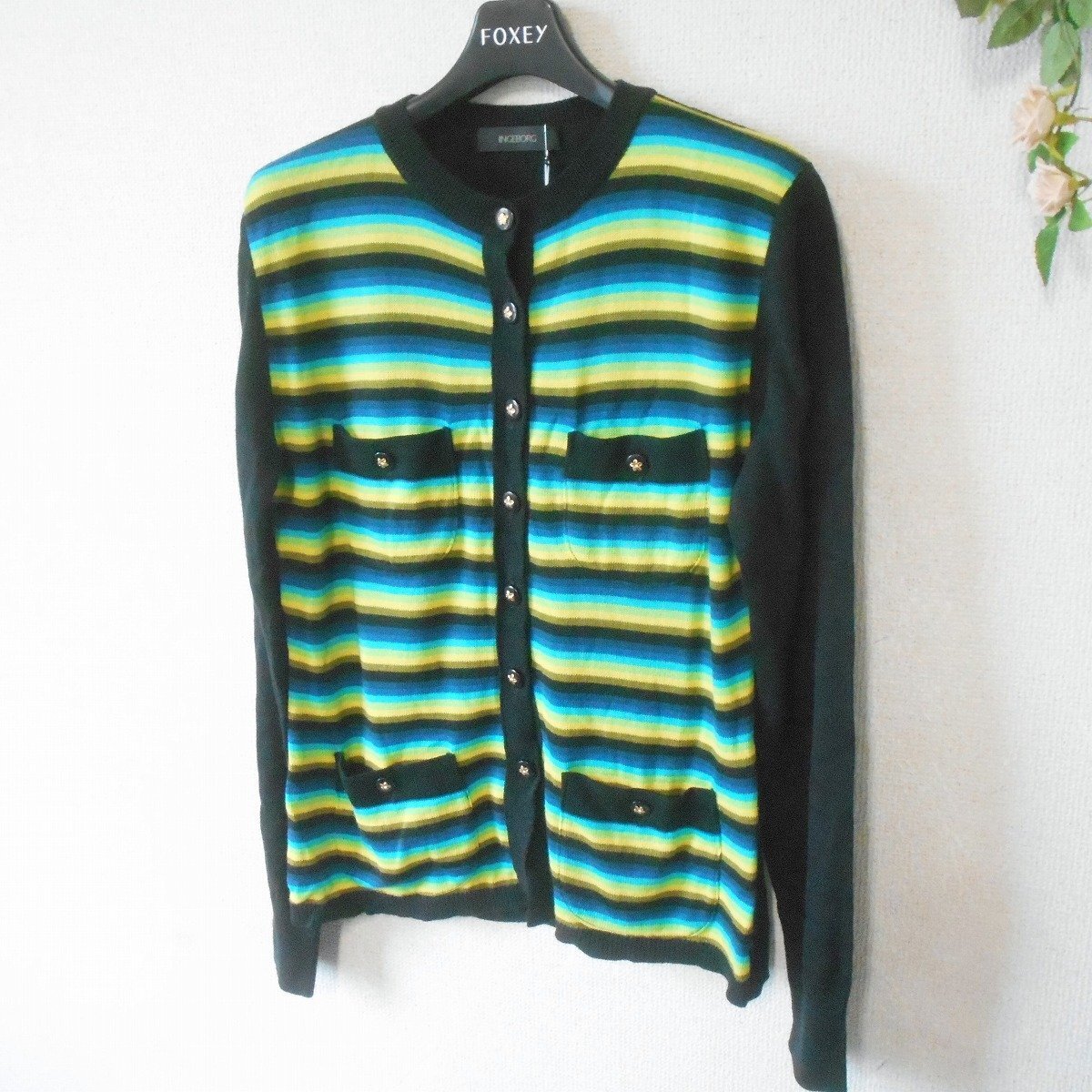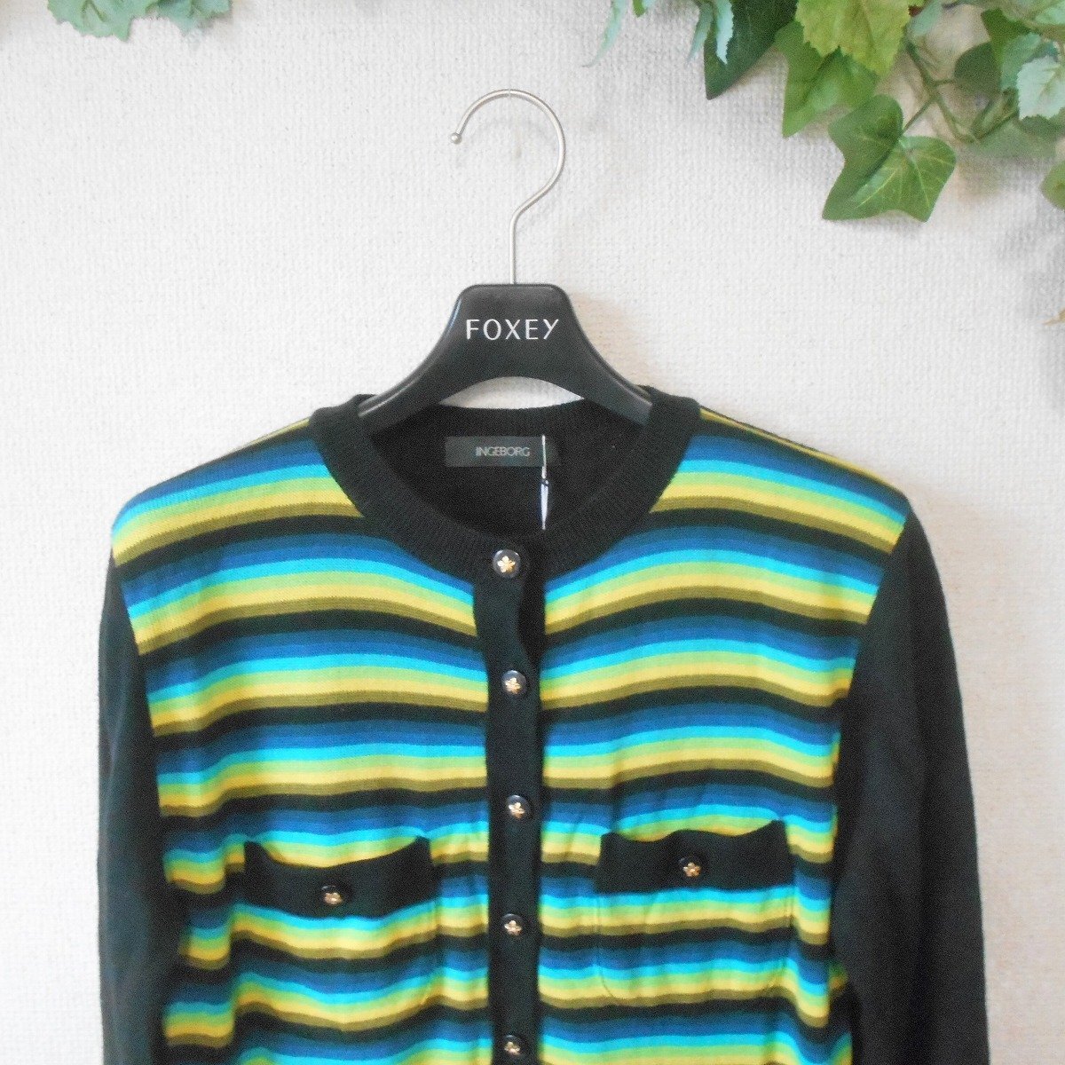 新品 インゲボルグ INGEBORG ニット カーディガン M 秋 冬 春 カラフル ボーダー 未使用 レディース 日本製