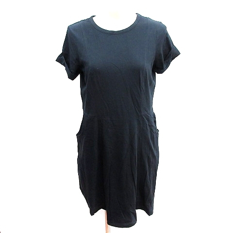 セオリー Theory Tシャツワンピース ひざ丈 ロールアップ 半袖 S 黒 ブラック /AU レディース