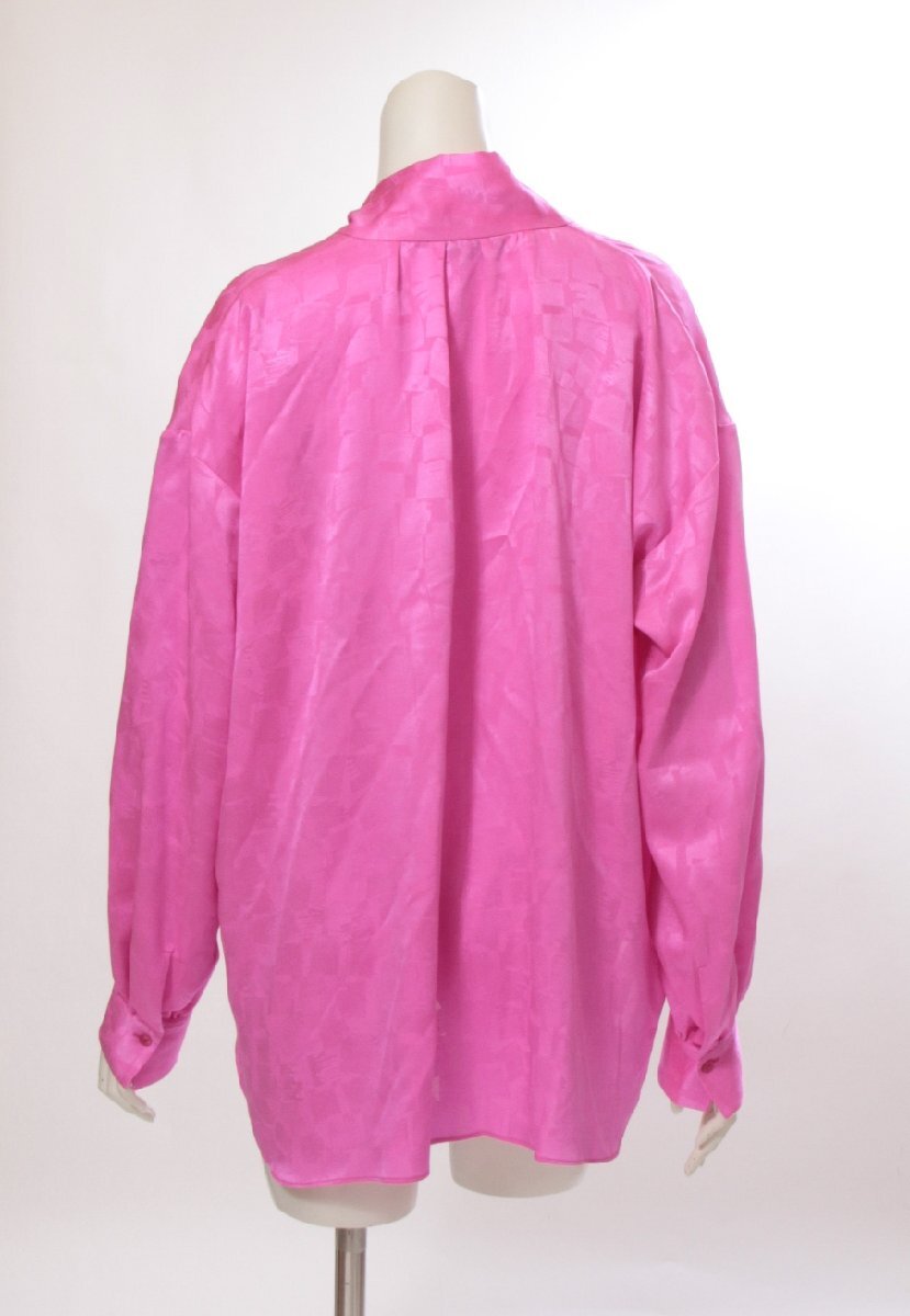 サイズ:M Lくらい 身幅:63 着丈:62 肩幅:57 袖丈:52 単位㎝(平置き採寸) カラー:ピンク 素材:シルク100% コンディション:S 光沢のある鮮やかなピンクが華やかなブラウス。ボウタイに長さがあるのでアレンジして楽しめそうです。 |