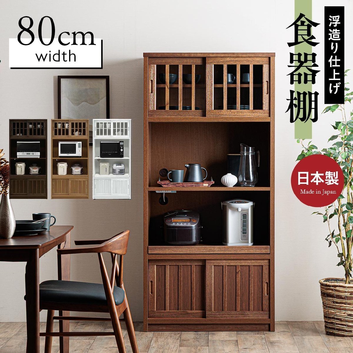 食器棚 レンジ台 キッチンボード 幅80cm 80cm幅 レンジラック カップボード キッチン ホワイトウォッシュ