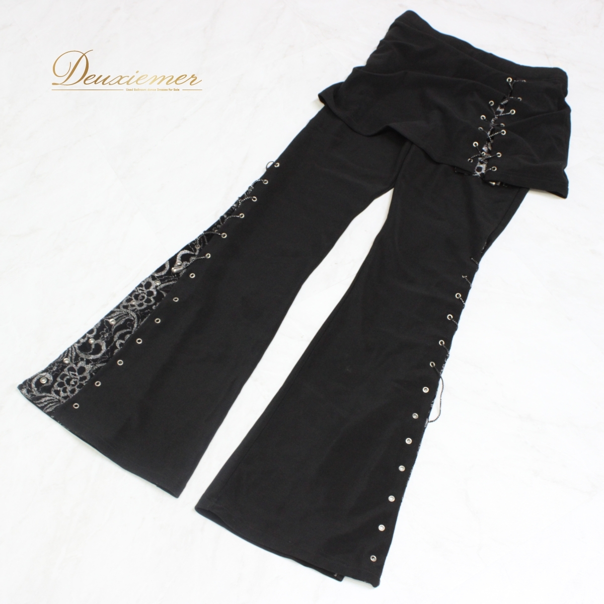 | 商品説明 | 【商品名】社交ダンス衣装 パンツ ボトムス 【サイズ】 平置き実測:総丈約99cm、ウエスト約34.5cm~ ※実測の為、多少の誤差はご容赦願います。 【仕様】 ・ウエストゴム仕様 ・伸縮性有り ------------------------------------ 【ポイント】 ▽ICHIOKU イチオク ▽ブラック×シルバー ▽シックな花柄デザイン ------------------------------------ 【撮影時使用トルソー:女性用トルソー7号(少し細めのサイズです)】 トルソーサイズ詳細 肩幅約37cm、バスト:約83cm、ウエスト約60cm、ヒップ約81cm |