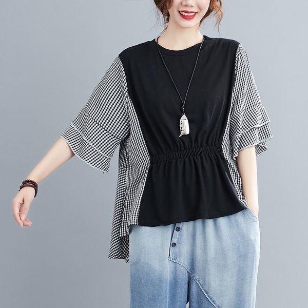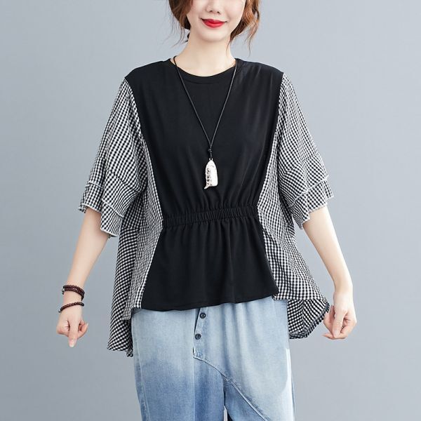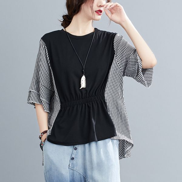 ★★★レディース トップス ブラウス シャツ ライトブラウン チェック柄 EX43