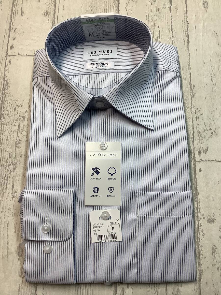 新品 39-86 長袖Mサイズ レギュラーカラー★ドレスシャツ ノンアイロンコットン 綿100% ★ブルーラインストライプ