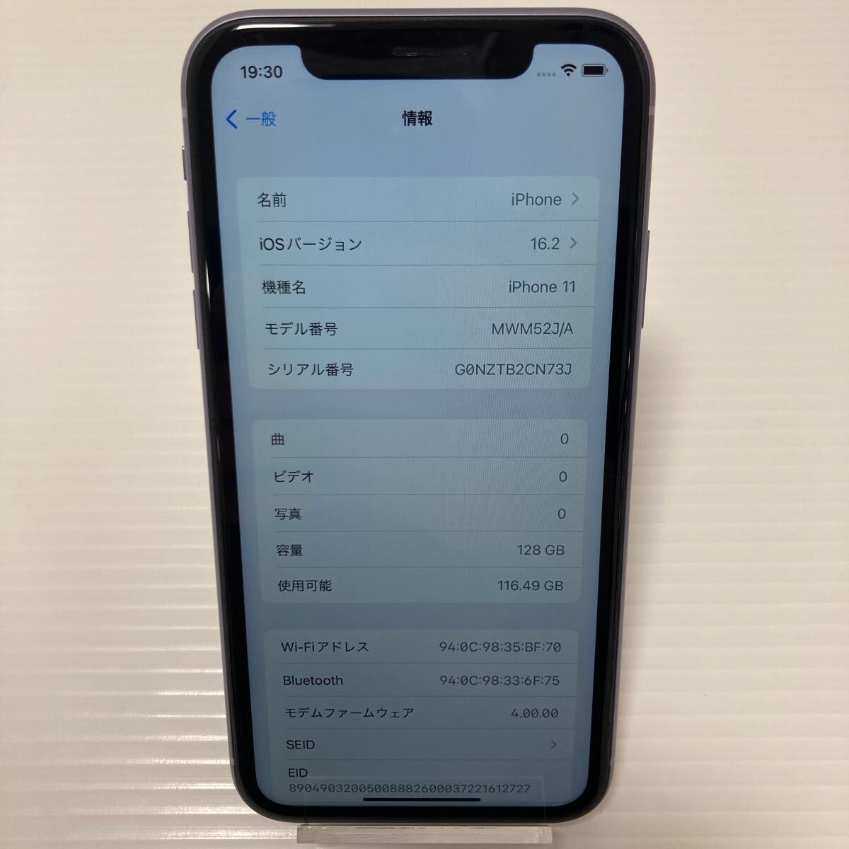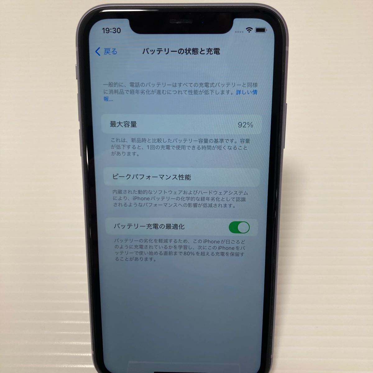 【即決★動作OK】 Apple iPhone 11 パープル 128GB MWM52J/A バッテリー92% 利用制限:◯ ※SIMロック有 (au)