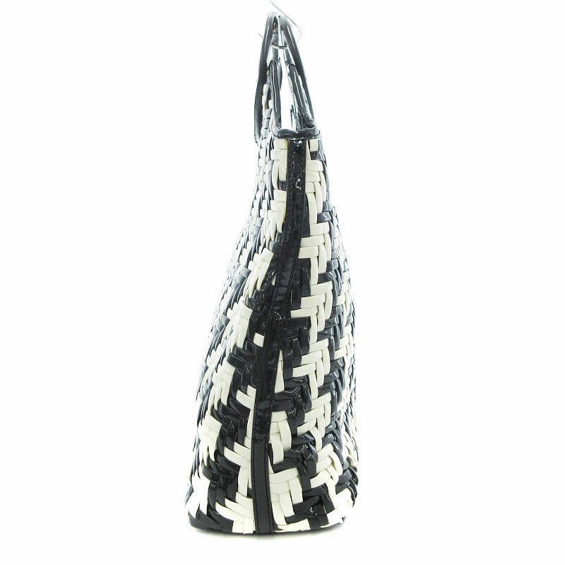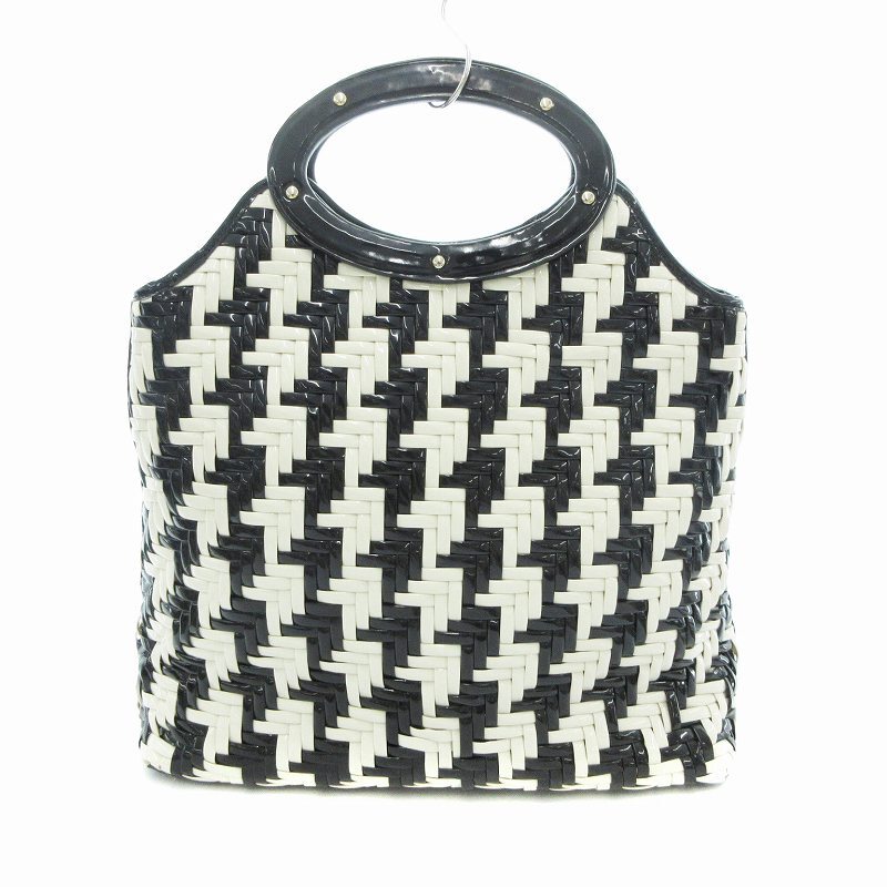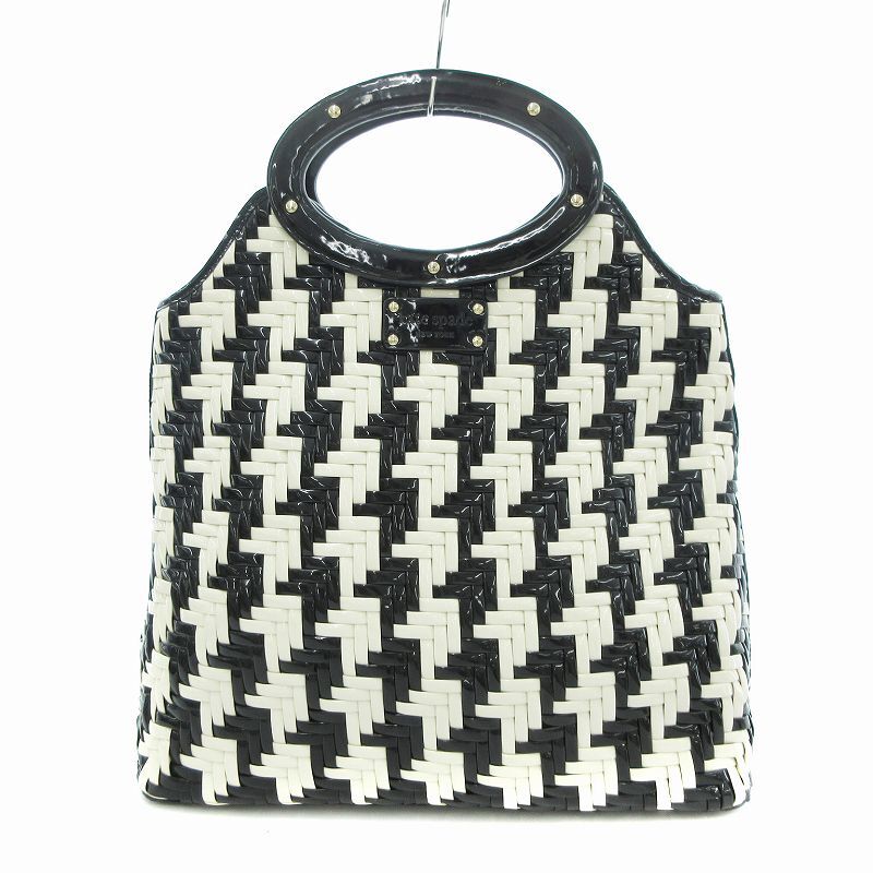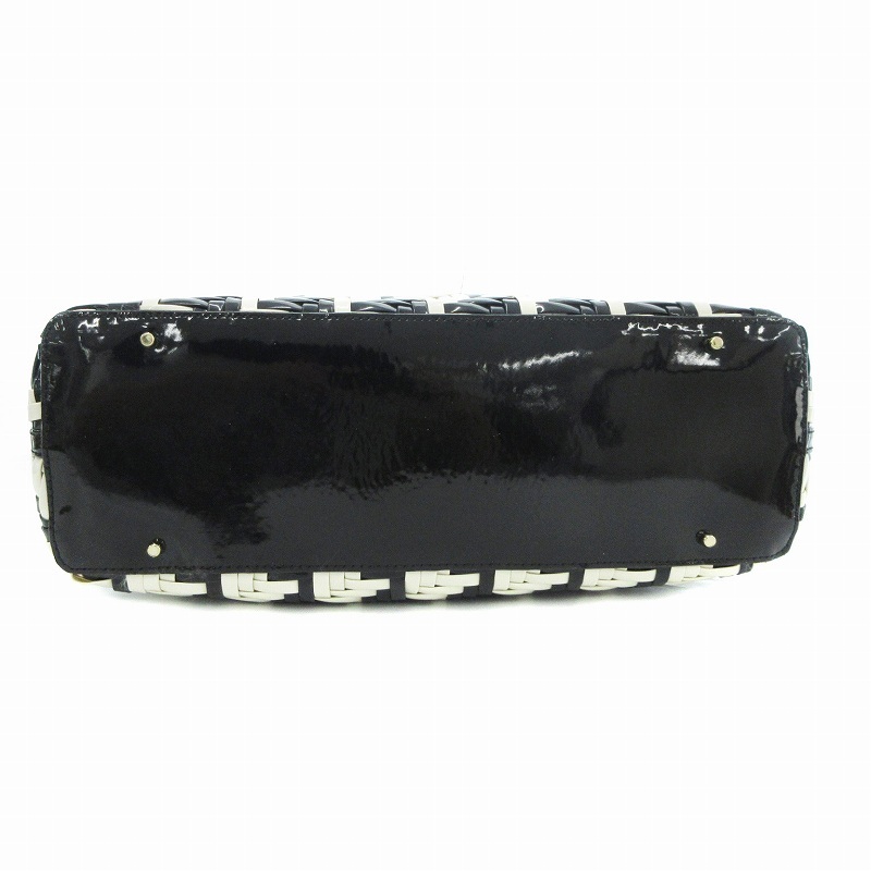 ケイトスペード KATE SPADE ハンドバッグ エナメル 編み込み 白 ホワイト 黒 ブラック /JS レディース