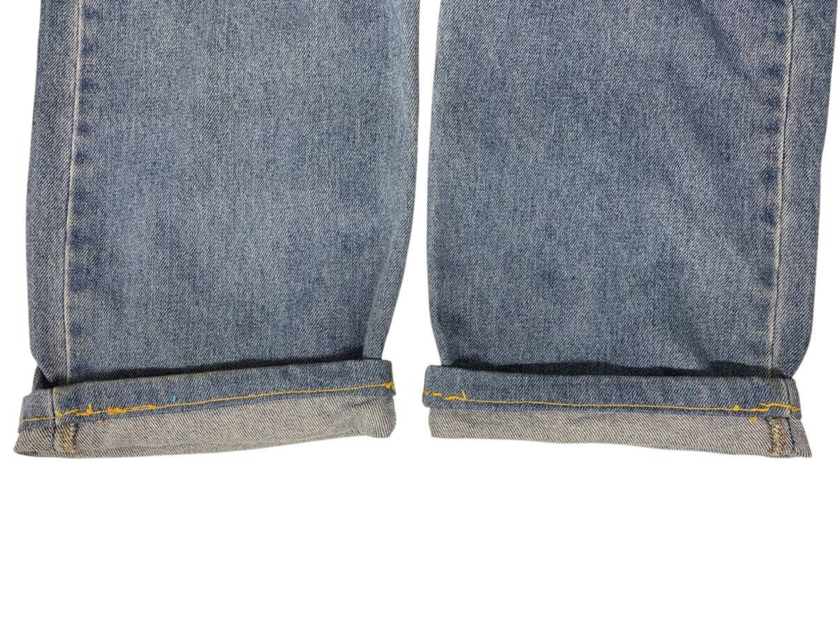 実寸サイズ | ウエスト:約86cm(平置きウエスト×2) 股上:約32cm(内股の合わせ~ウエスト上端) 股下:約65cm(内股から裾) もも幅:約31cm 裾幅:約22cm |