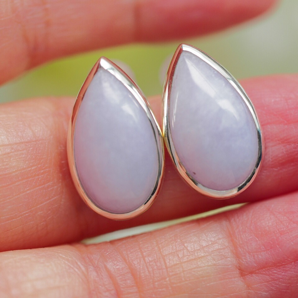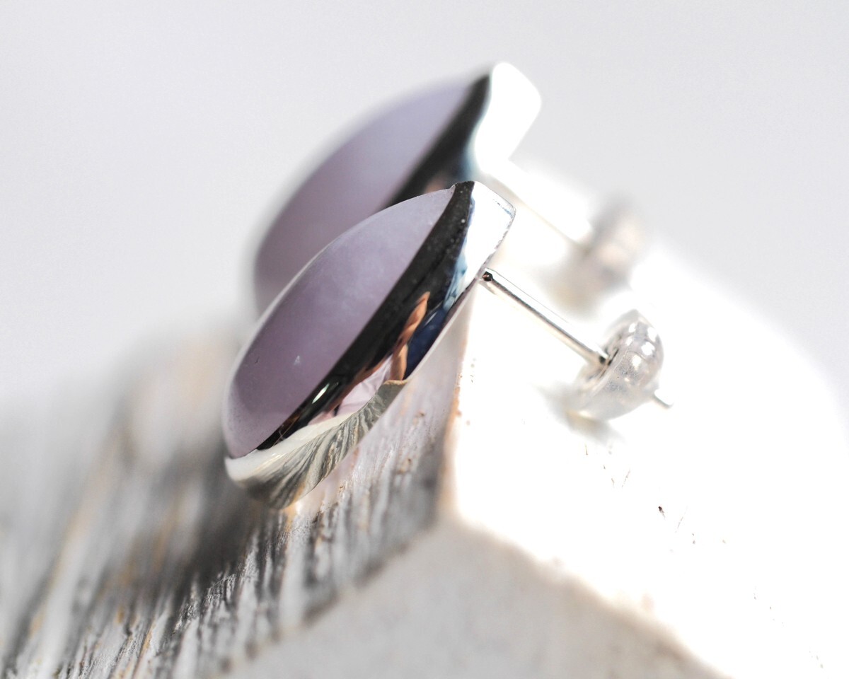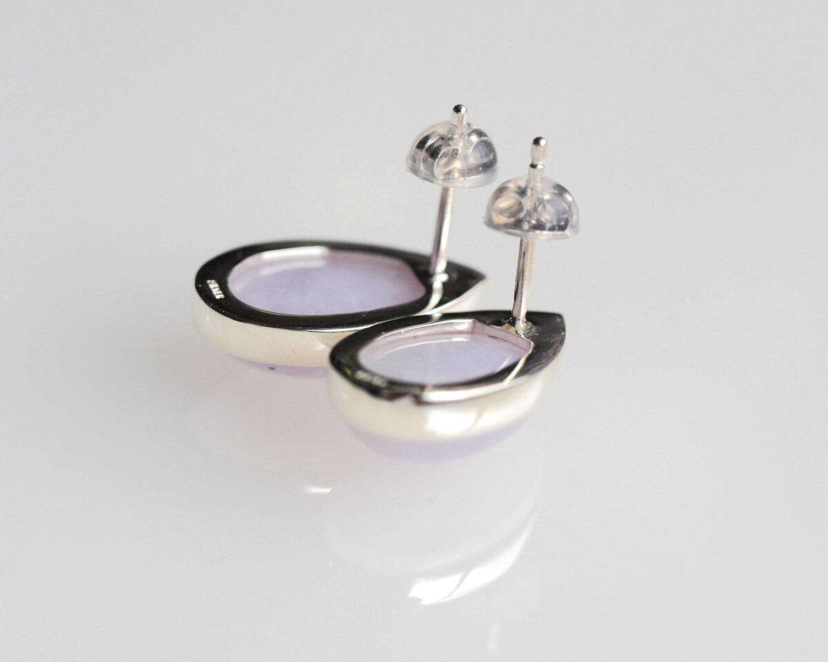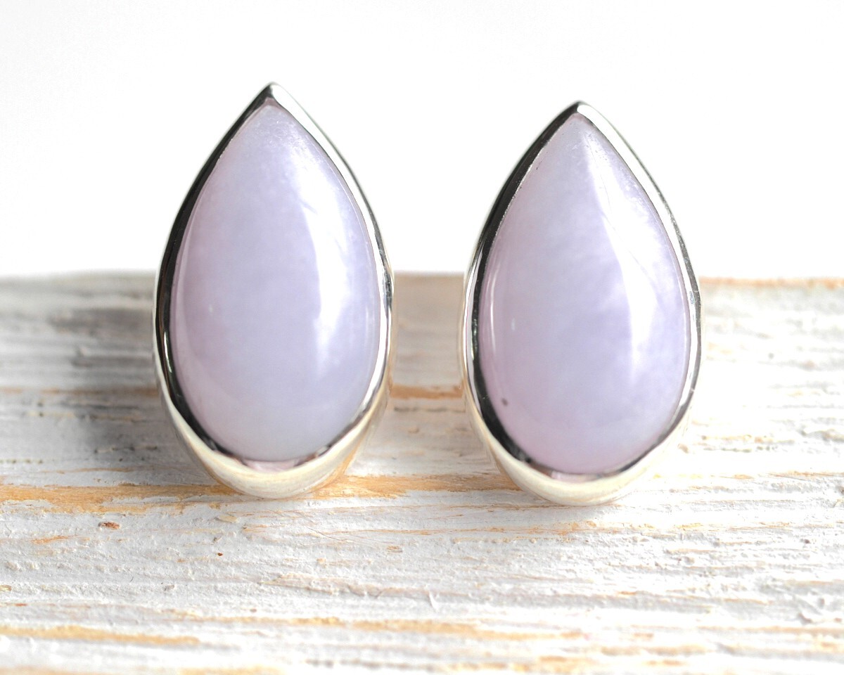 こちらはホワイトにわずかなラベンダーを混ぜ込んたナチュラルカラーの糸魚川翡翠を使用してシンプルなピアスに仕上げしております。