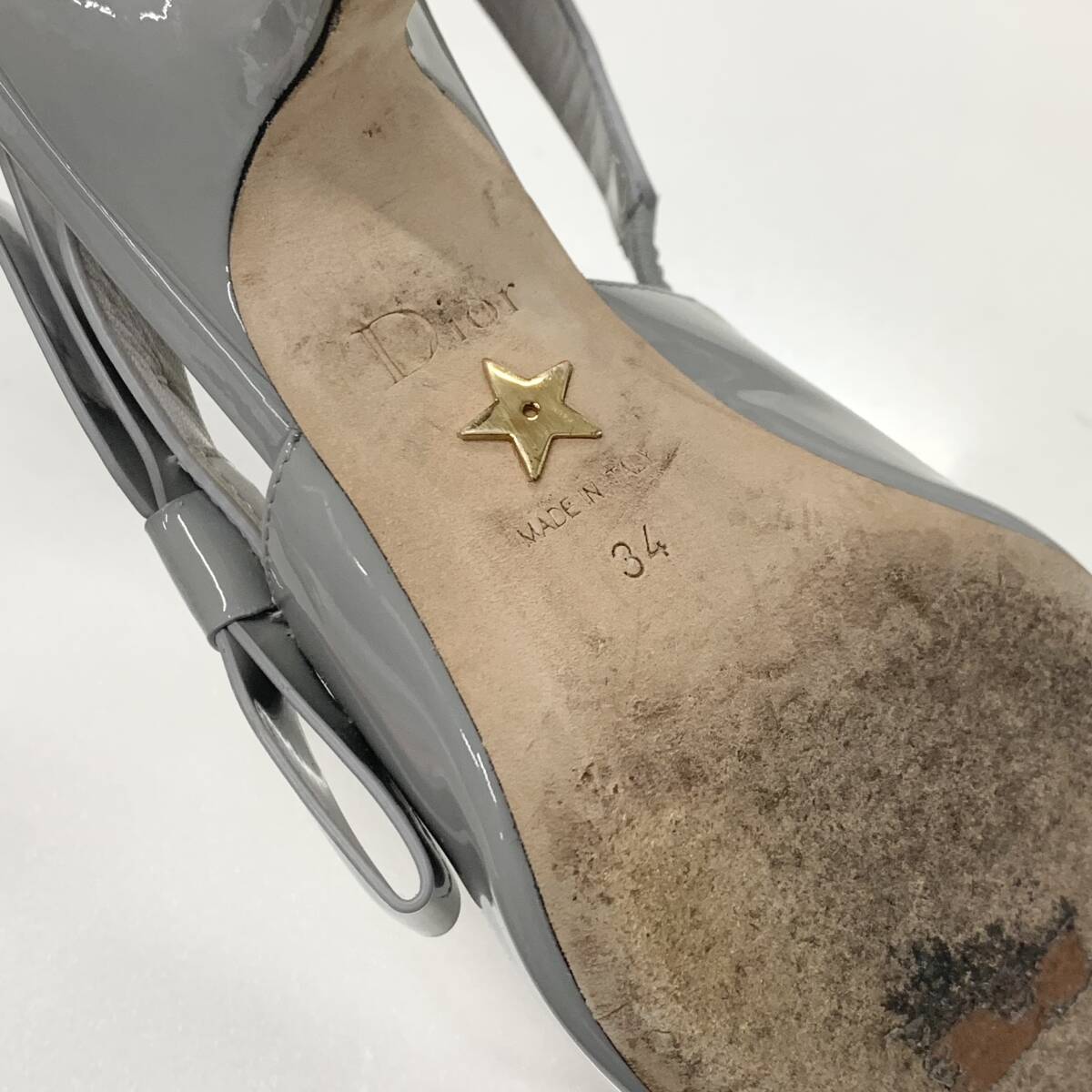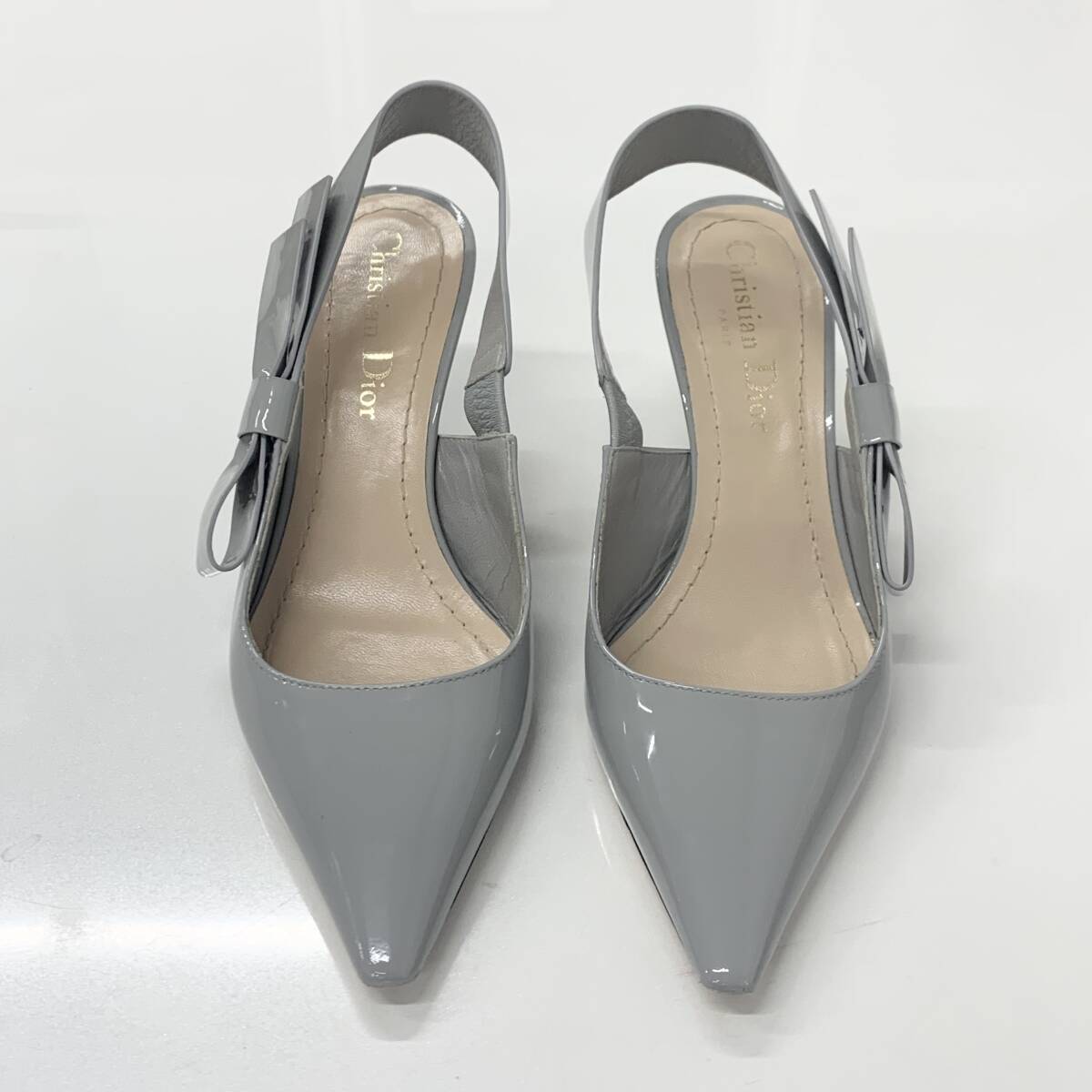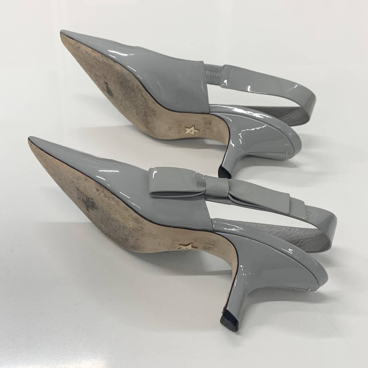 クリスチャンディオール パテント スリングバック パンプス グレー