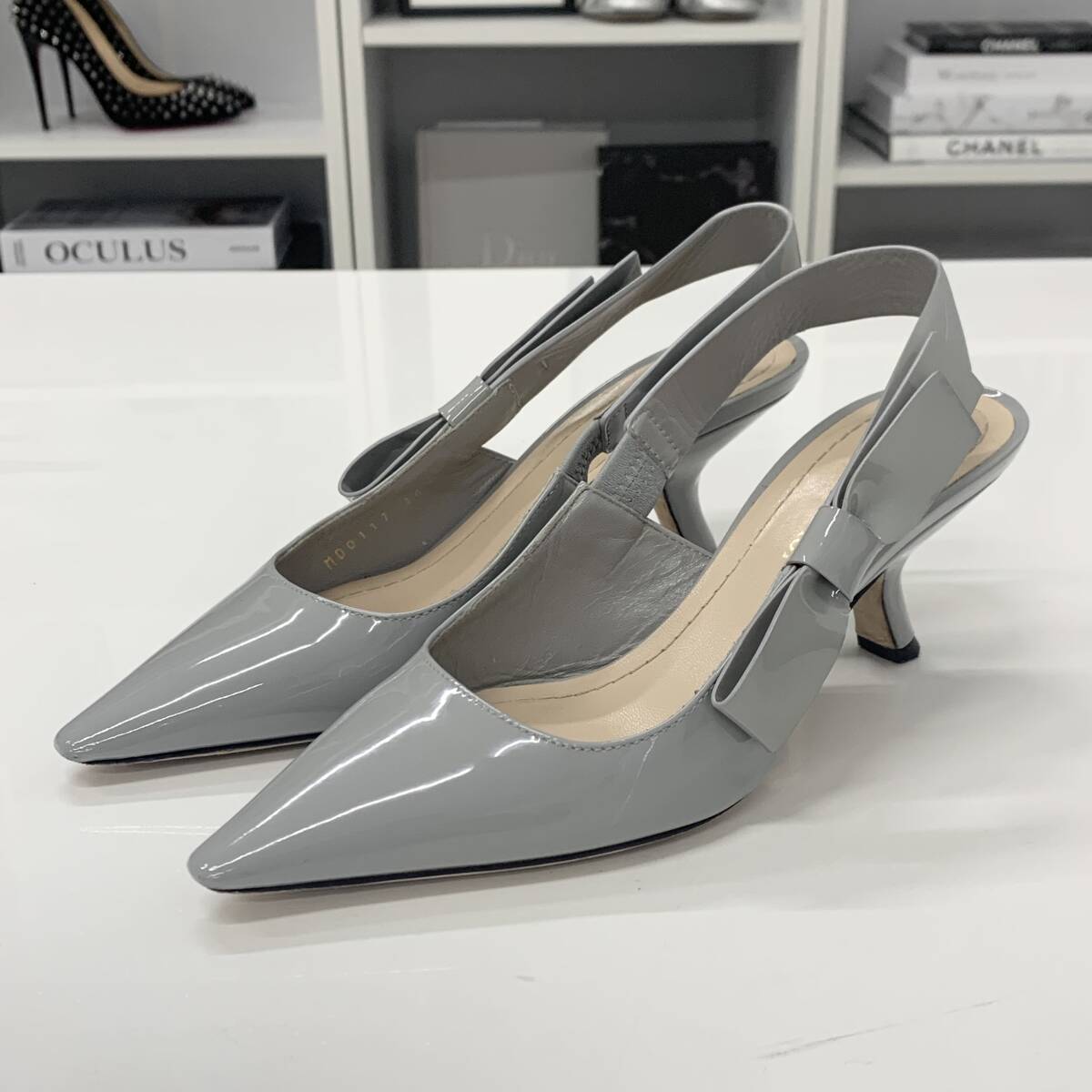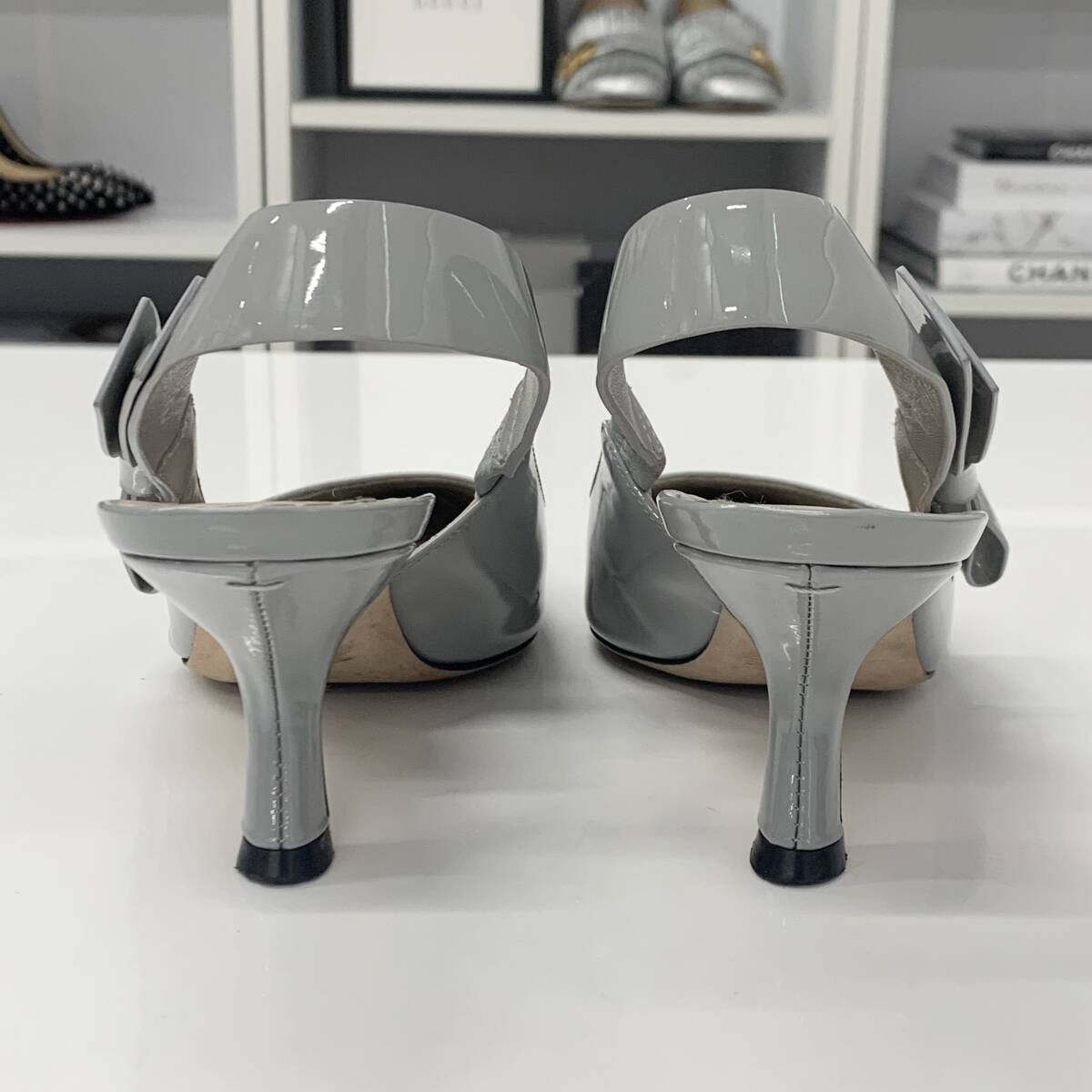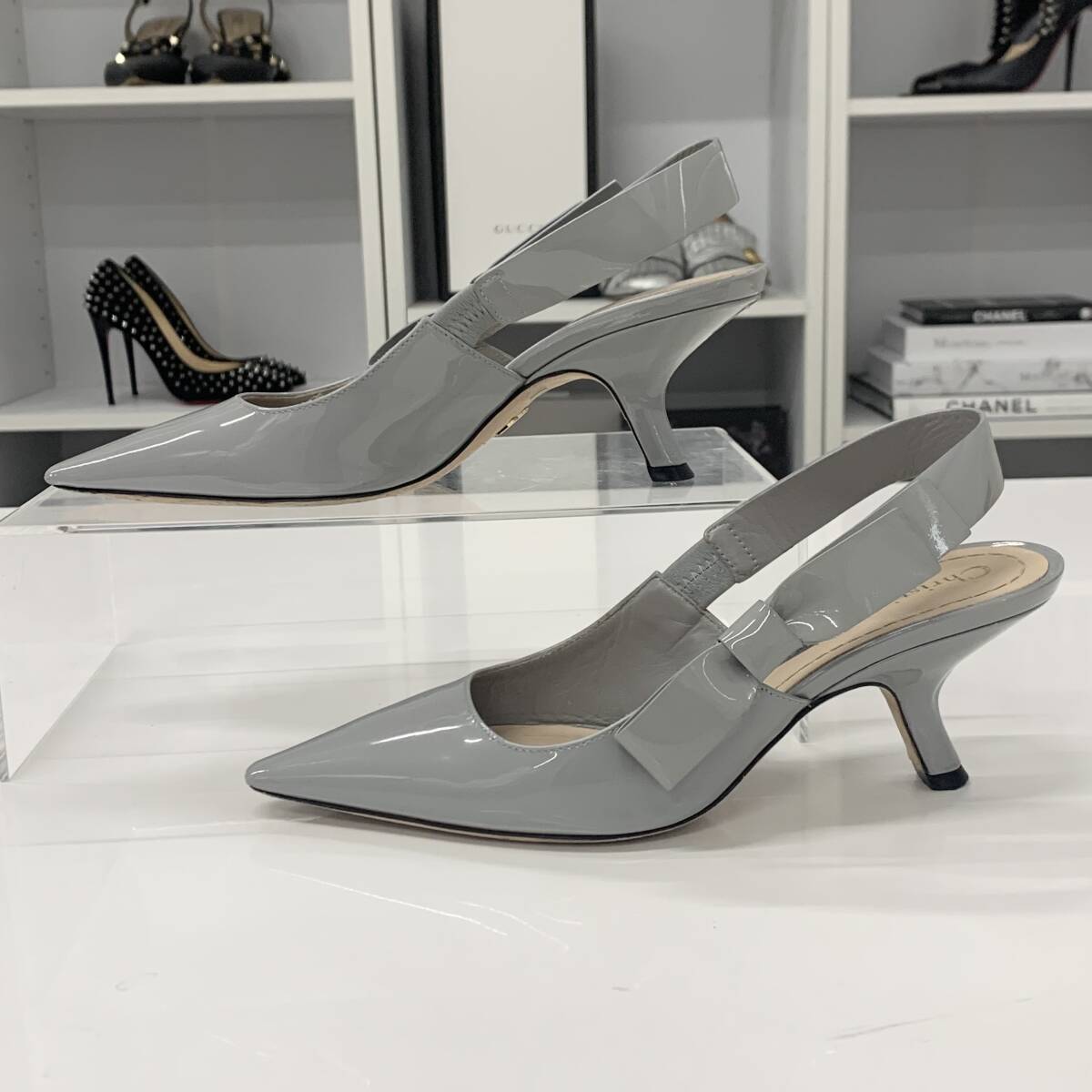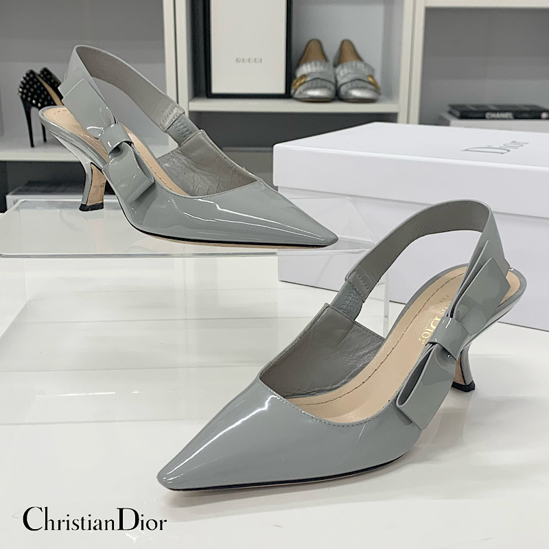 クリスチャンディオール パテント スリングバック パンプス グレー