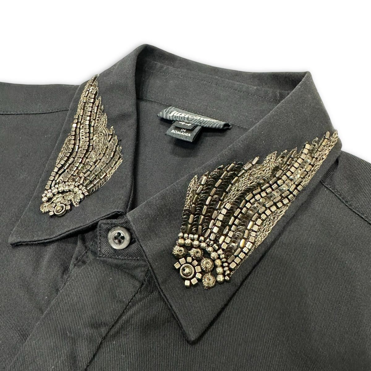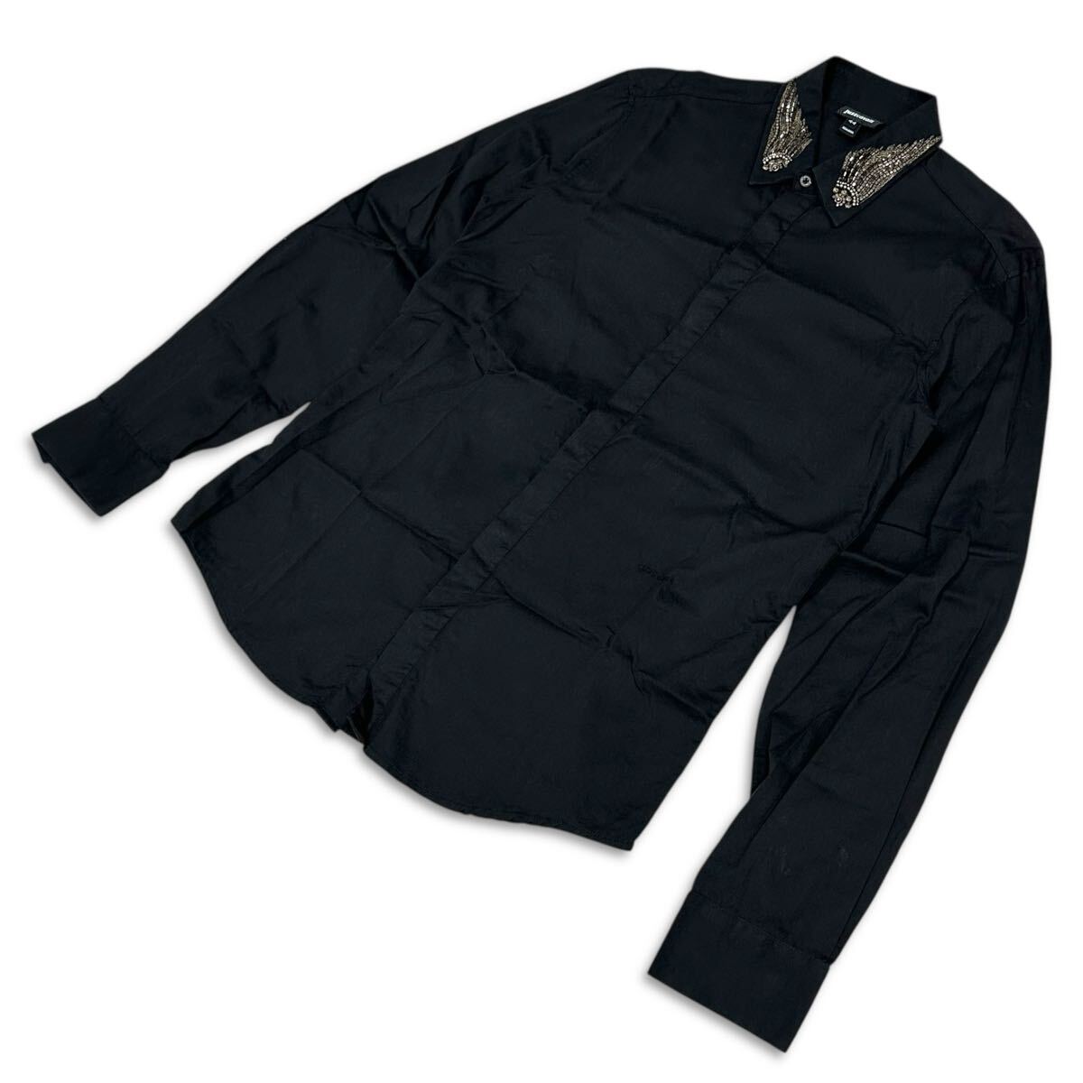 Just cavalli (ジャストカヴァリ) ビーズ装飾 長袖 シャツ 黒ブラック 44 綿 コットン100%