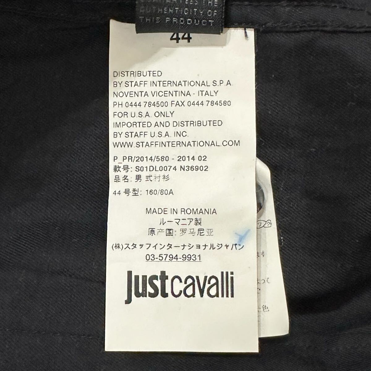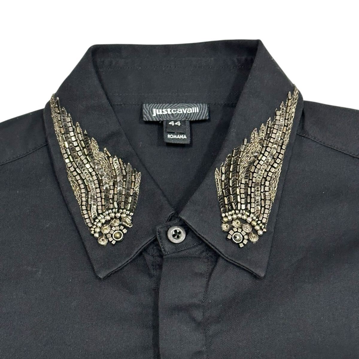 国内正規品■ Just cavalli (ジャスト カヴァリ) ビーズ装飾 長袖 シャツ 黒ブラック 44 綿 コットン100%