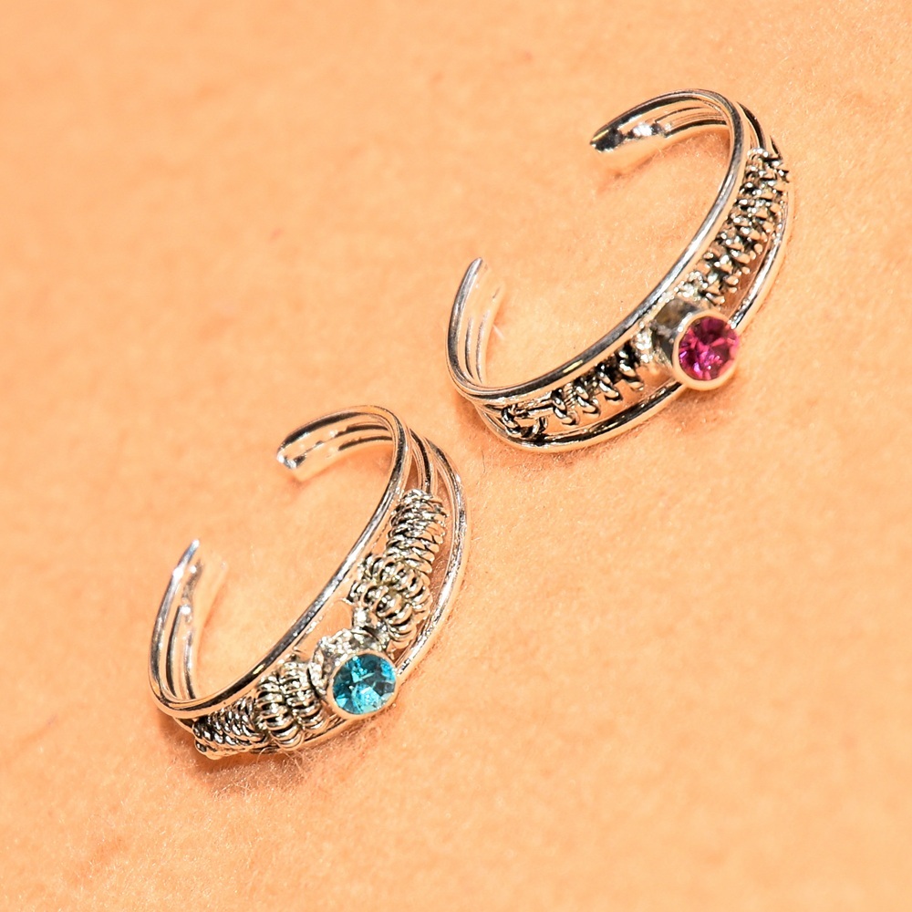 カラーストーンでデザインされた、足用指輪・トゥリング、2個セットです。