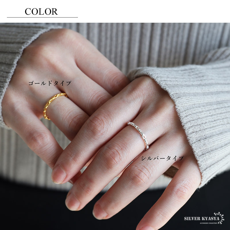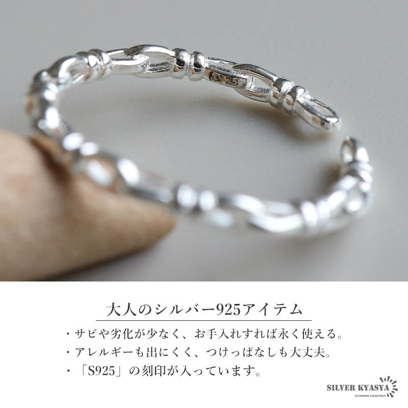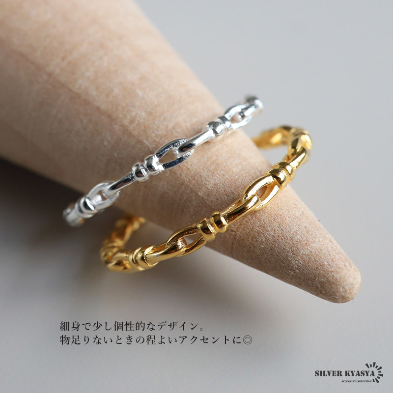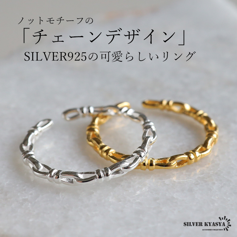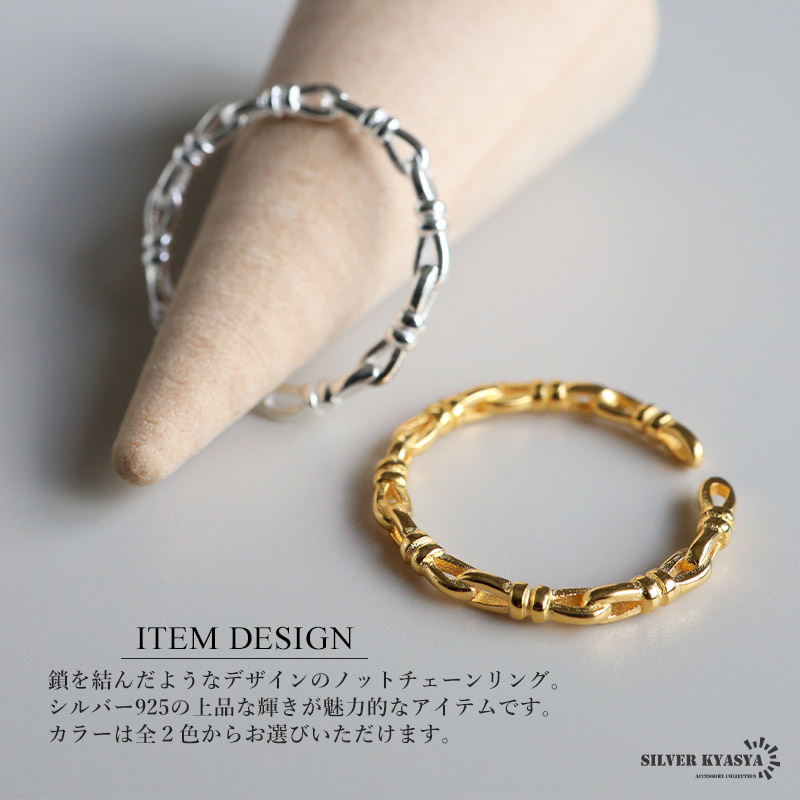鎖を結んだようなデザインのノットチェーンリング。シルバー925の上品な輝きが魅力的なアイテムです。カラーは全2色からお選びいただけます。