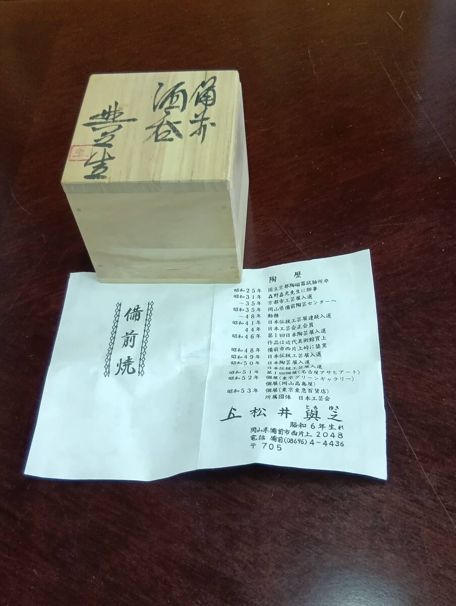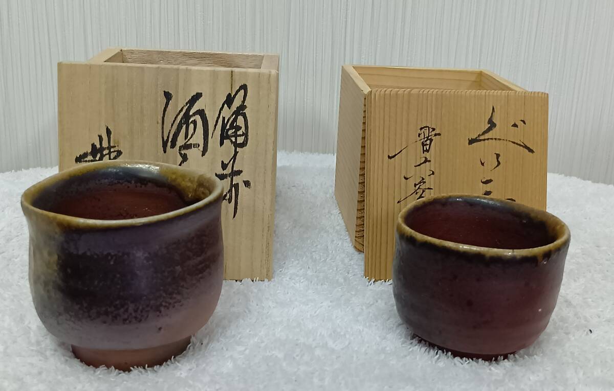 | 【セット内容】 ●備前焼酒呑 岡山県重要無形文化財保持者、松井與之先生の備前酒呑です。 四方桟共箱、共布、栞が付いています。 寸法: 高さ約6cm 口径約6cm ※多少の誤差はお許しください ●京都晋六窯の陶器製のぐい呑みお猪口 寸法: 高さ約5cm 口径約5.5cm ※多少の誤差はお許しください 【状態】 中古品のため小傷程度はありますが大きなダメージはありません。 状態については画像もご確認ください。 中古品または現状品のため出品内容(注意事項含む)をご理解いただける方以外は入札をお控え下さい。 発送までに1日~5日程度いただく場合がございますのでお急ぎの場合は事前にご相談ください。 ノークレーム、ノーリターンでお願い致します。 | ||