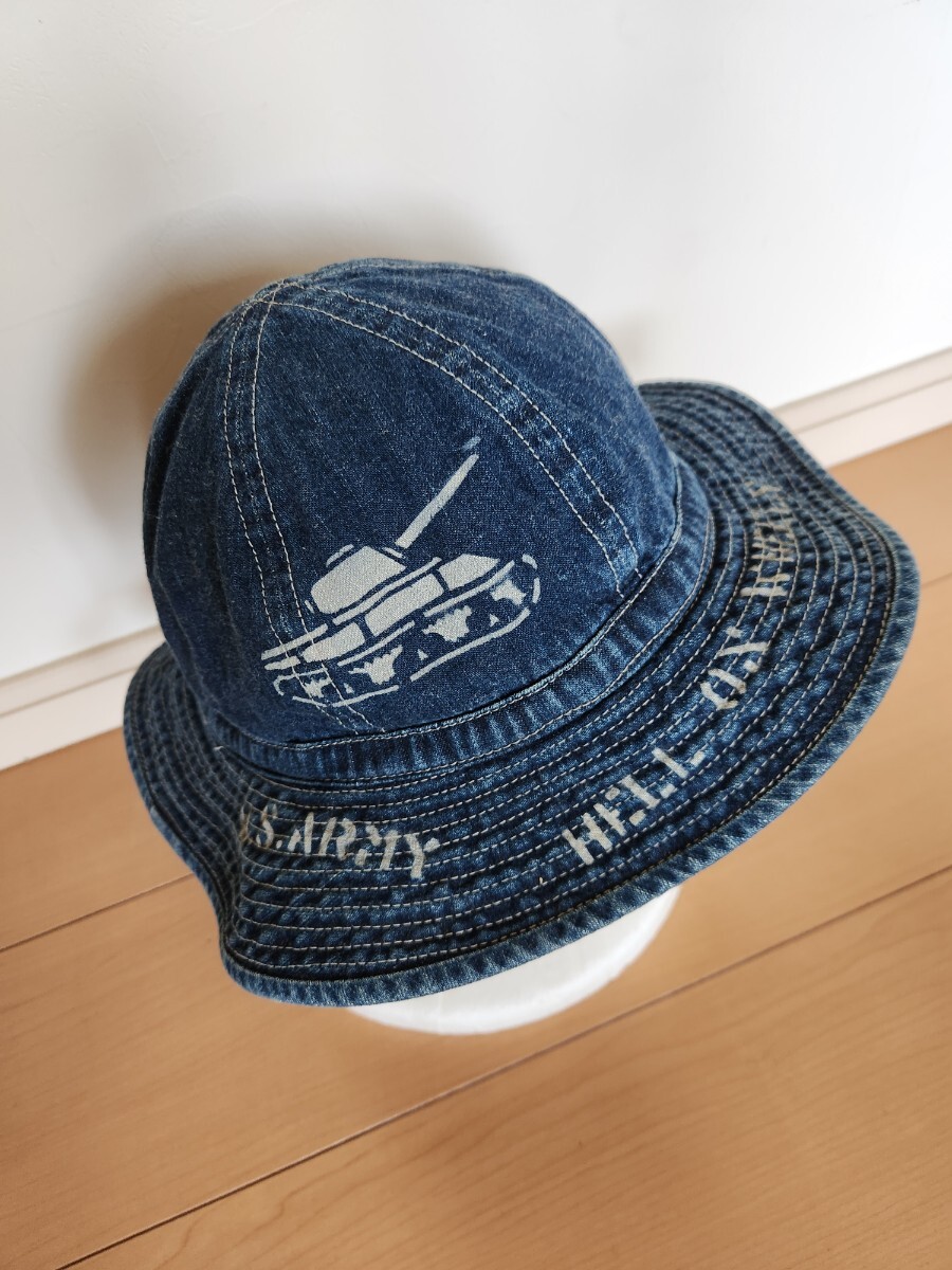 ◎特徴 米陸軍が1934年に開発したデニム製のハットは、デニムのジャケットとトラウザースのセットアップで着用を前提として採用された。こちらは1940年に創設された“Hell on Wheels”(地獄の車輪)というニックネームを持つ第2機甲師団のステンシルを施し、経年変化を再現したモデル。陽除けとなる幅広のブリムは、生地をドーナツ状にくり抜いた用尺の掛かる贅沢な仕様。外周に走った無数のステッチは手間のかかる“一筆書き”で行われている。