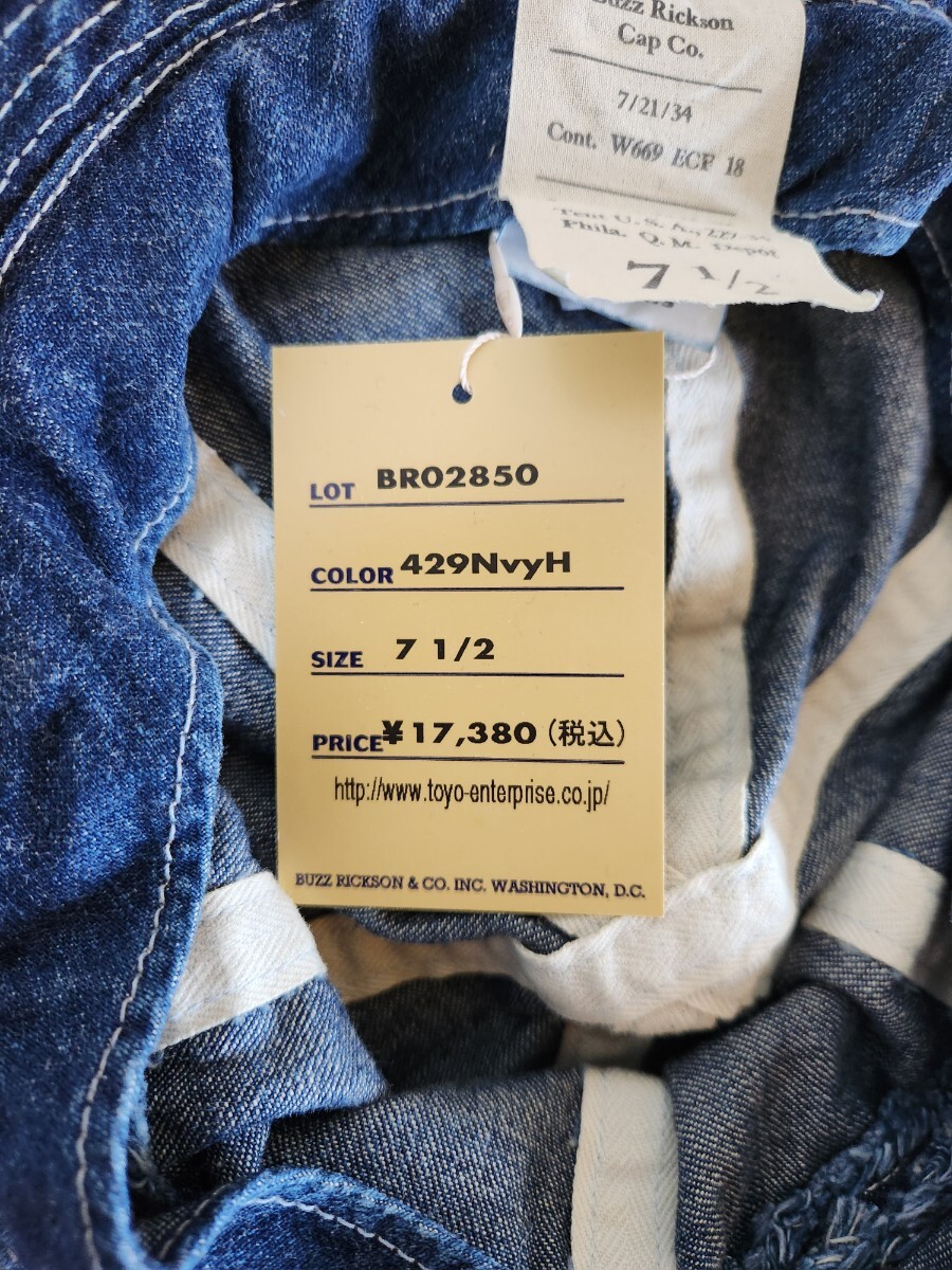 ◎ 東洋エンタープライズ社『Buzz Rickson's』バズリクソンズ ワーキング デニムハット ヴィンテージ ウォッシュ ステンシル付きです。