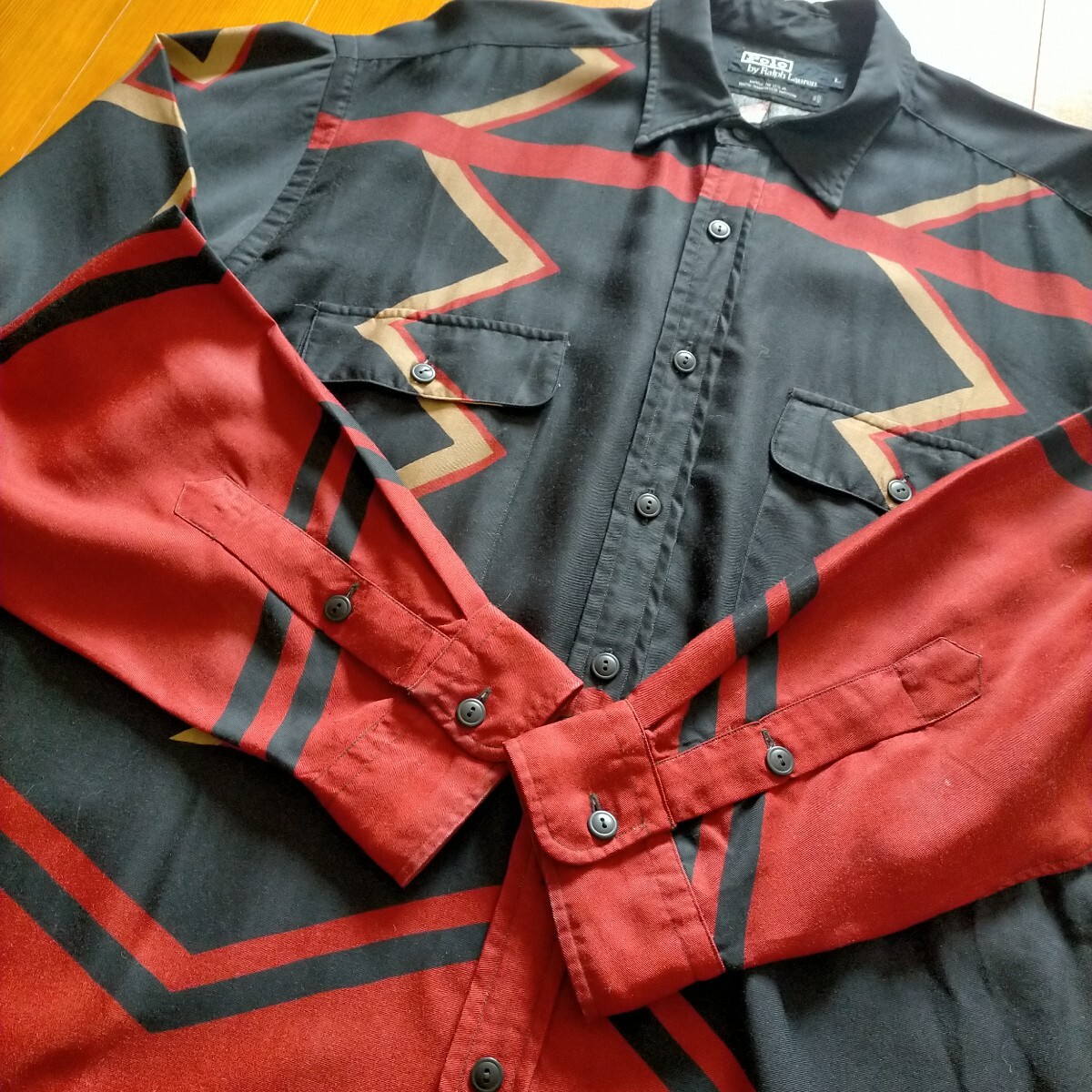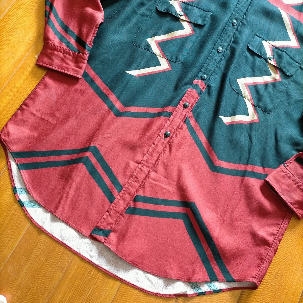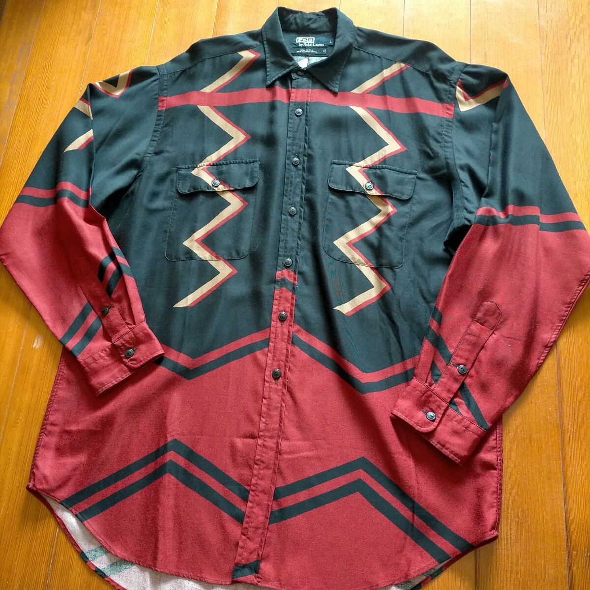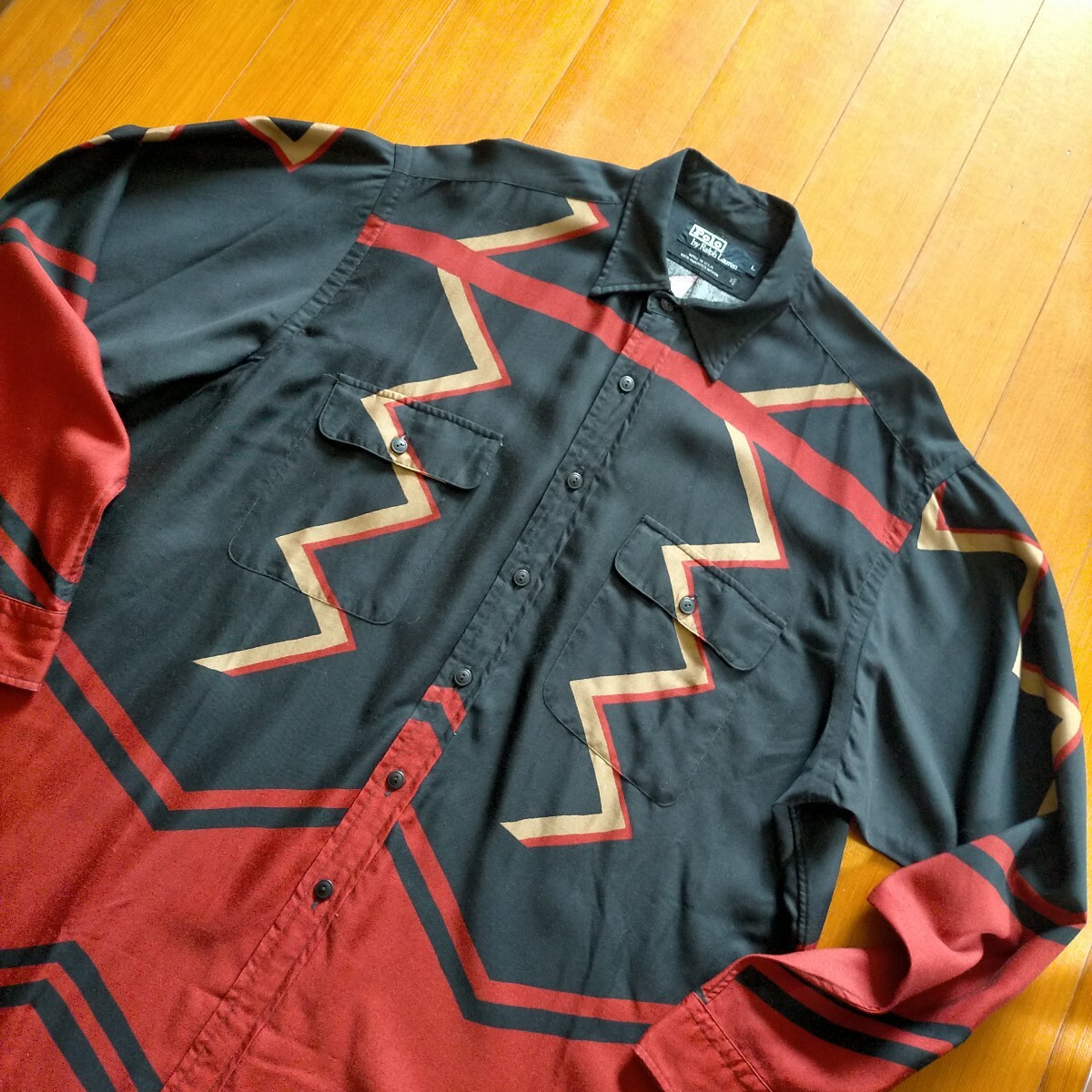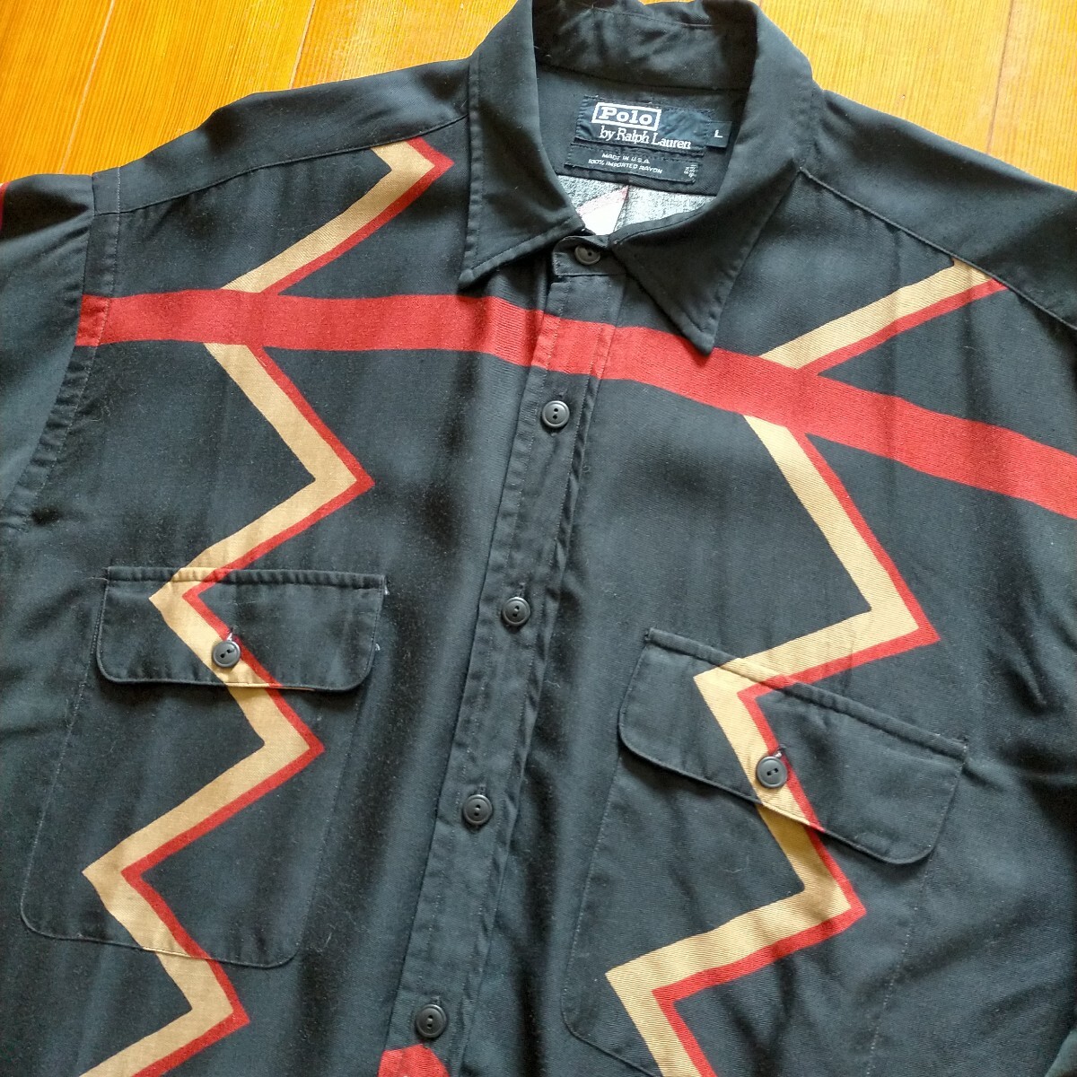 ポロ ラルフローレン Ralph Lauren レーヨン シャツ 幾何学 柄シャツ USA製 サイズL