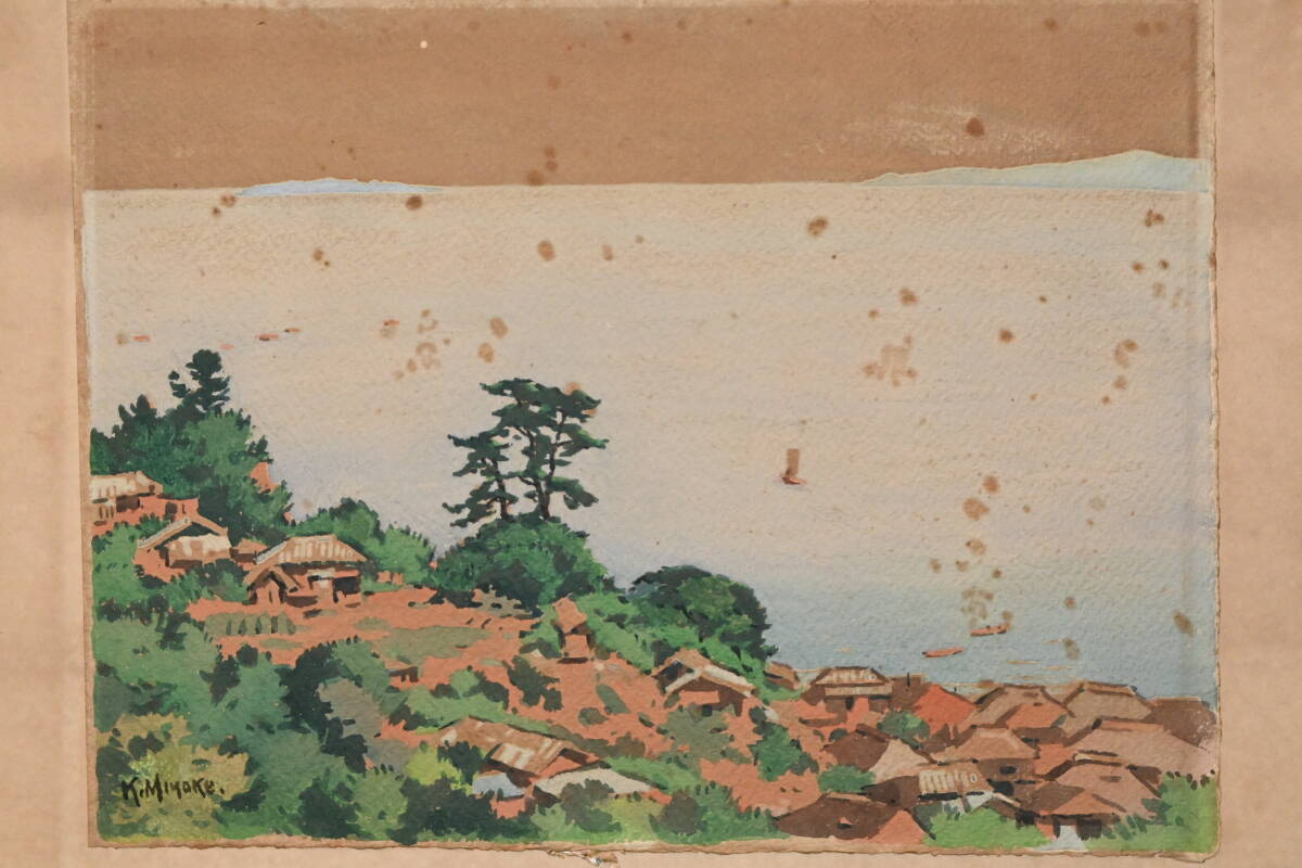 真贋保証■三宅克己■ 水彩 海の見える風景画 浜辺 直筆サイン 額装6号 水彩表現の開拓者 徳島県徳島市生 光風会 日本芸術院恩賜賞受賞 | |||
