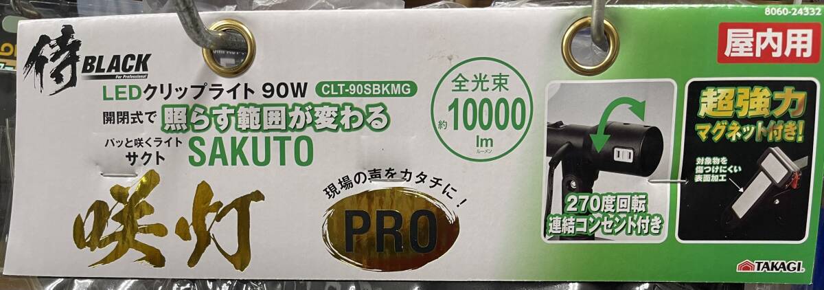新モデル!! 侍BLACK 咲灯PRO サクト LEDクリップライト 90W 3個 全光束約10000ルーメン マグネット付 5mコード 270度回転連結コンセント付