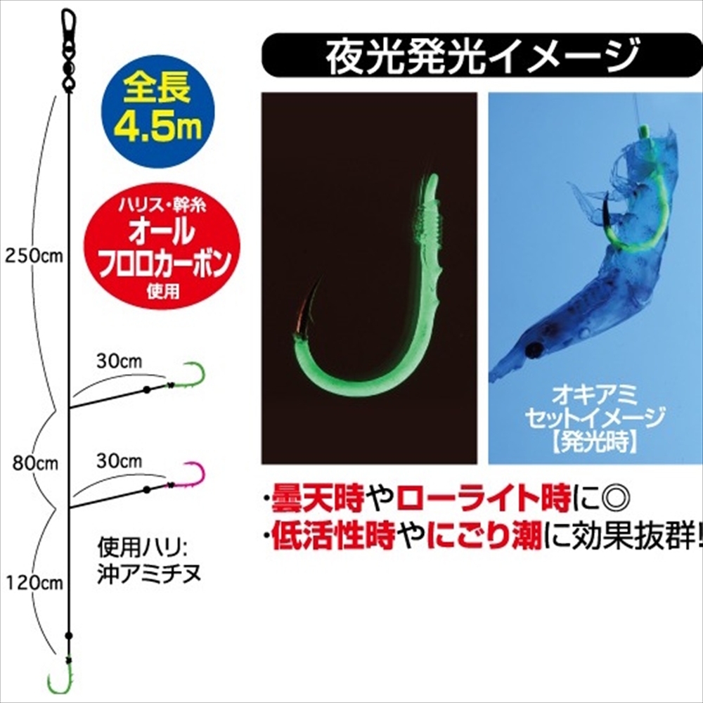 夜光カラーフックが強烈発光し、捕食信号を刺激する!