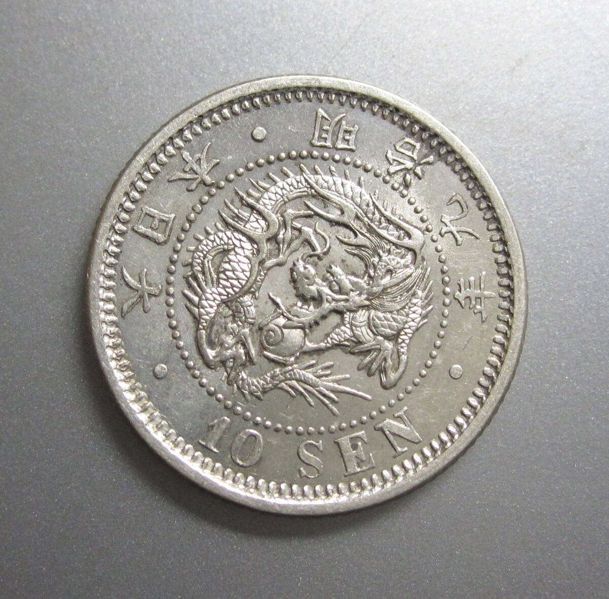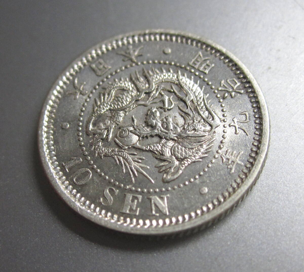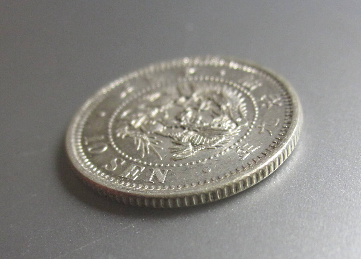 ★竜10銭銀貨★明治9年後期e★未使用-★