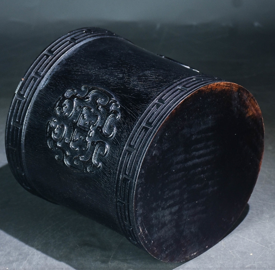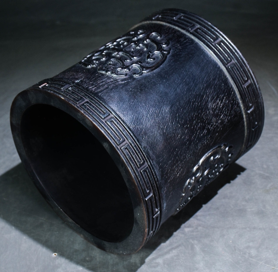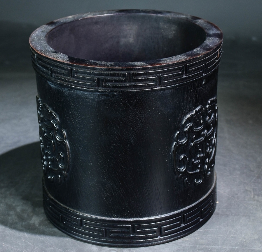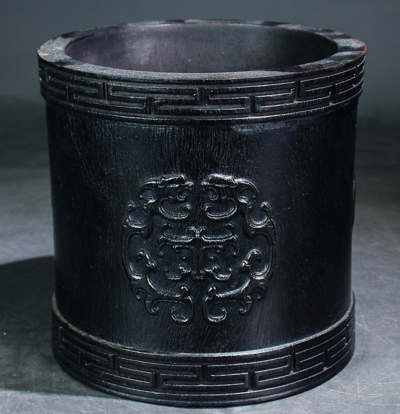 *珍品旧蔵* 清 木材細密彫 血檀 彫刻 キレート竜紋 筆立て 筆道具 文房具 置物 極細工 唐物 中国古玩 骨董品 古美味 H45