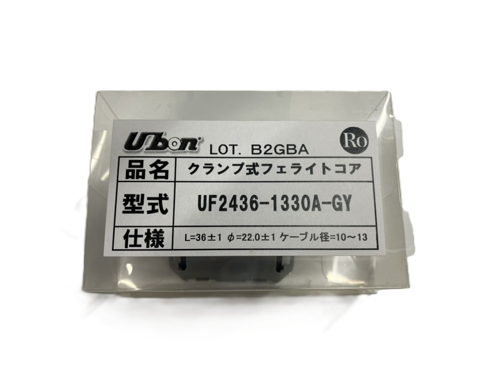 クランプ式フェライトコア L=36±1φ22.0±1適合ケーブル径10~13 ユーボン UF2436-1330A-GY