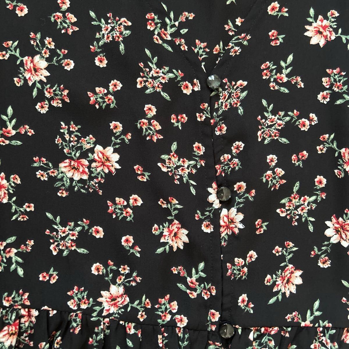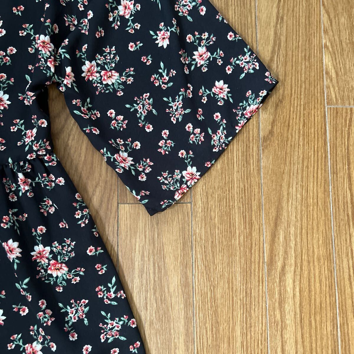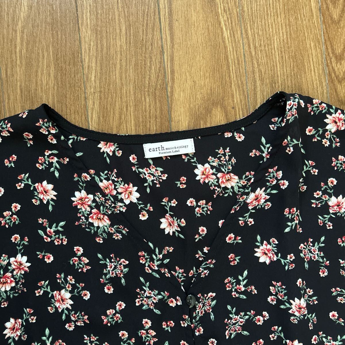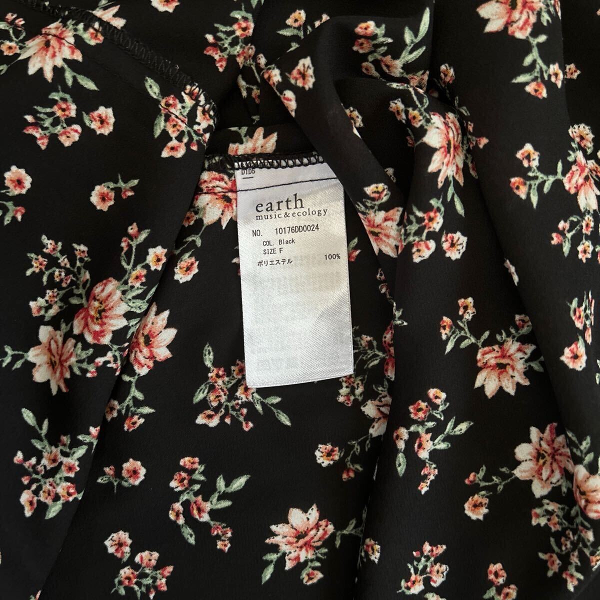 ★earth music&ecology★ アースミュージック&エコロジー 半袖ワンピース ブラック 花柄 かわいい サイズフリー