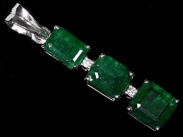 ◆輝く天然エメラルド 大粒3石 総計3.92ct&極上ダイヤモンドを宝飾した、超高級ペンダントヘッドをご紹介いたします!!!