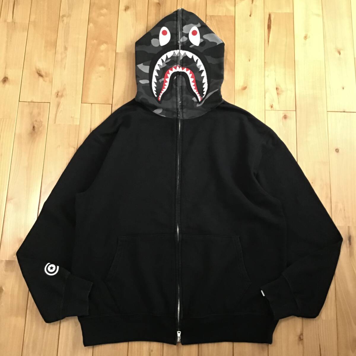 a bathing ape ★青山限定★ シャークパーカー ブラック × ブラックカモ Lサイズ です★
