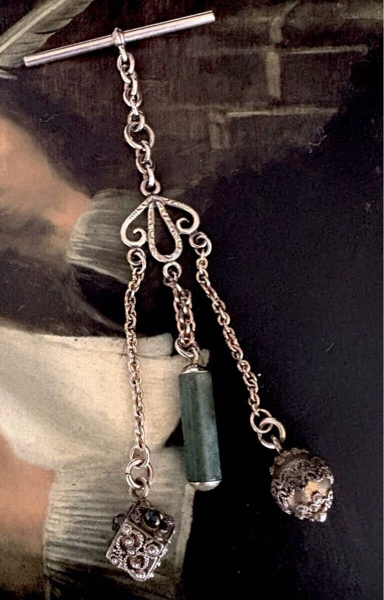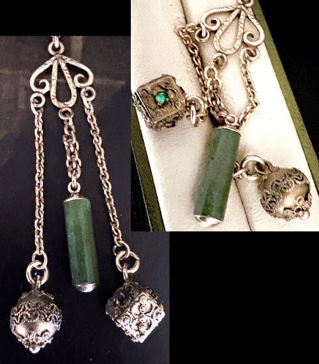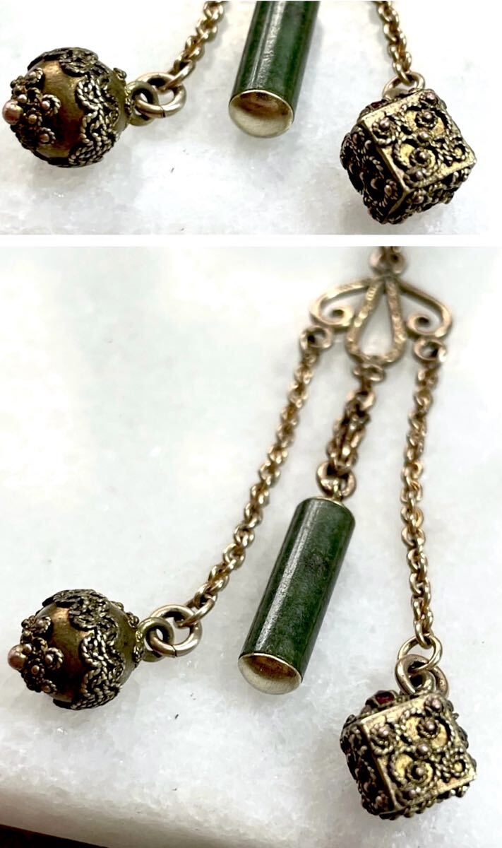 英国アンティーク ビクトリアン フォブ TBAR Chatelaine/シャトレーン ジェード/翡翠 ロールドゴールド