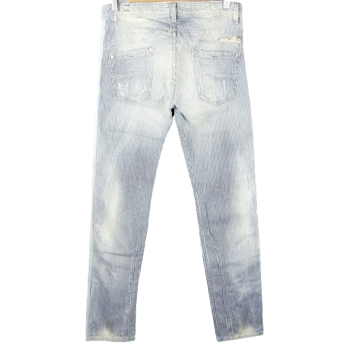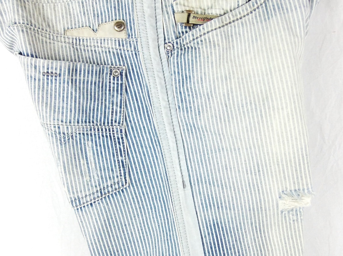| 商品説明 | ■商品について ブランド名:DIESEL 販売元:ディーゼルジャパン(株) 生産国:MADE IN ITALY イタリア製 サイズ:W29 L32 カラー:インディゴ × ホワイト 素材:コットン 100% モデル:DARRON / 0063Q ・ウォッシュ加工 ・ダメージ加工 ・フロント ボタンフライ ・裾上げ なし DIESEL の DARRON デニムパンツ、 全体的にスッキリとした美しいシルエットが特徴、 風合い豊かなヒッコリーデニム生地が採用されています。 着こなしの幅が広いアイテムなのでお勧めですよ。 是非この機会にご購入を検討頂けますと幸いです。 表記サイズ:W29 L32 ウエスト幅:約39.5cm 股上:約25cm 股下:約82cm 裾幅:約17.5cm 腿幅:約27.5cm (股下付根部分) ※平置にて計測 ※素人採寸のため多少の誤差はお許し下さい ■状態について 全体的に着用に伴う使用感、微かな薄汚れはありますが、 着用に支障がある程の目立つダメージ汚れはありません。 まだまだ問題なく着用頂ける状態です。 中古品のため少しでも状態を気にされる方、 完璧な商品をお求めの方は入札をお控え下さい。 -------------------------------------------------------------------- 他にも衣料品を中心に出品させて頂いております。 複数落札して下さった場合には、まとめて発送させて頂きますので、 送料がお得になります。⇒【出品リスト】 |