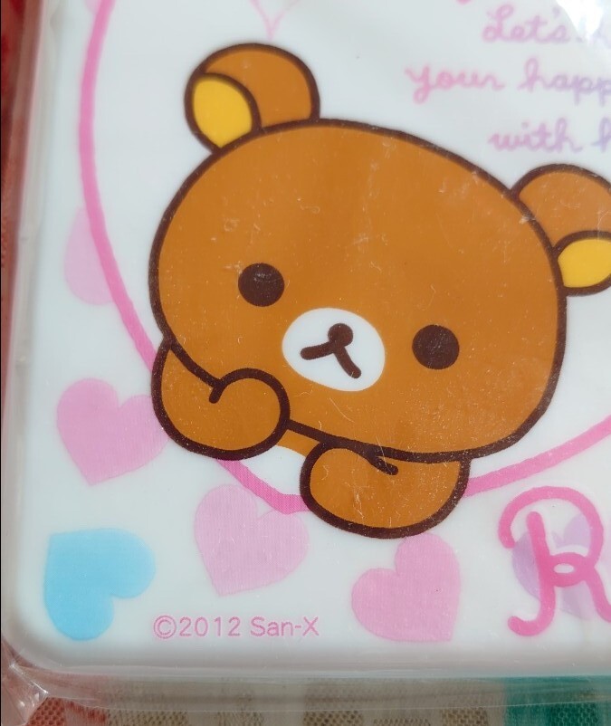 2012年のリラックマ、折りたたみランチボックスです。ピンク色でとても可愛いです。