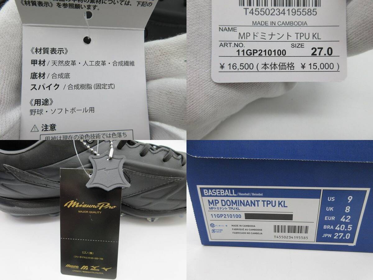 | ミズノ 野球 ソフトボール スパイク ドミナント 27cm 黒 未使用品 | ||