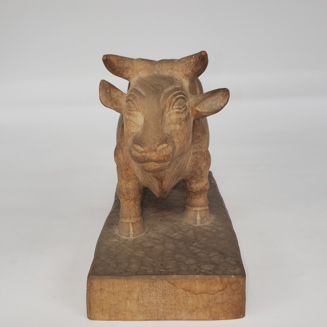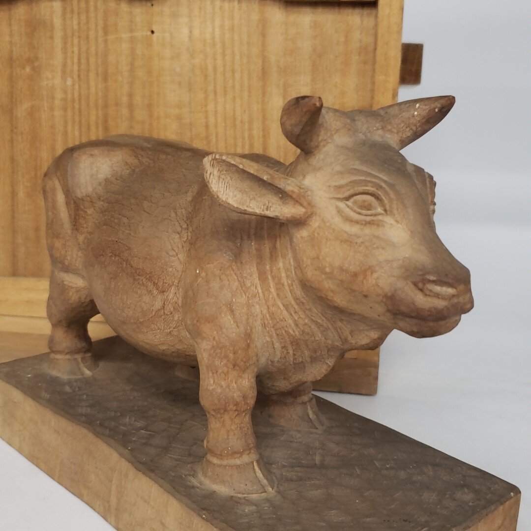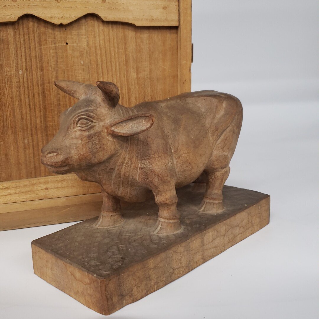 越中 井波彫刻 大島五雲作・牛の木彫置物です。木箱付きです。
