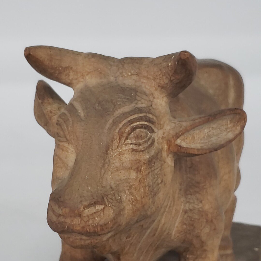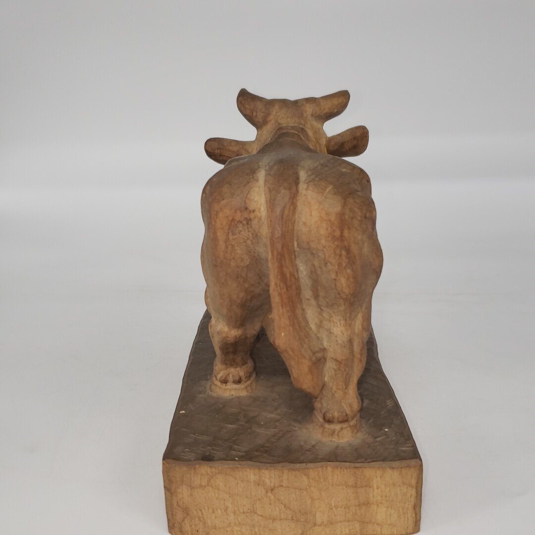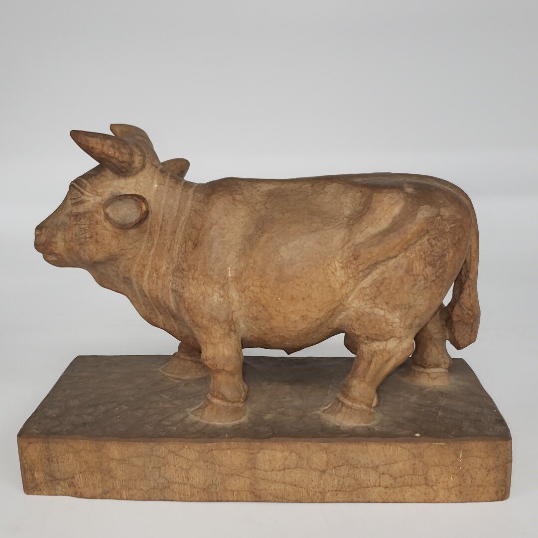 越中 井波彫刻 大島五雲作・牛の木彫置物です。木箱付きです。