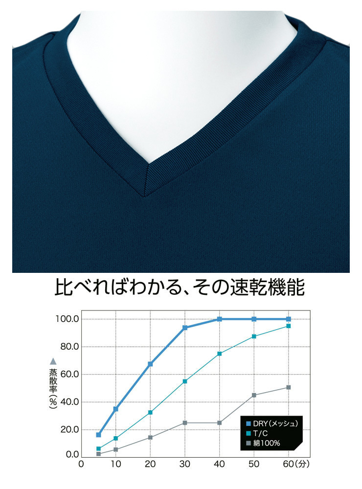 商品説明 | 夏に大活躍の半袖ドライVネックTシャツ。 |