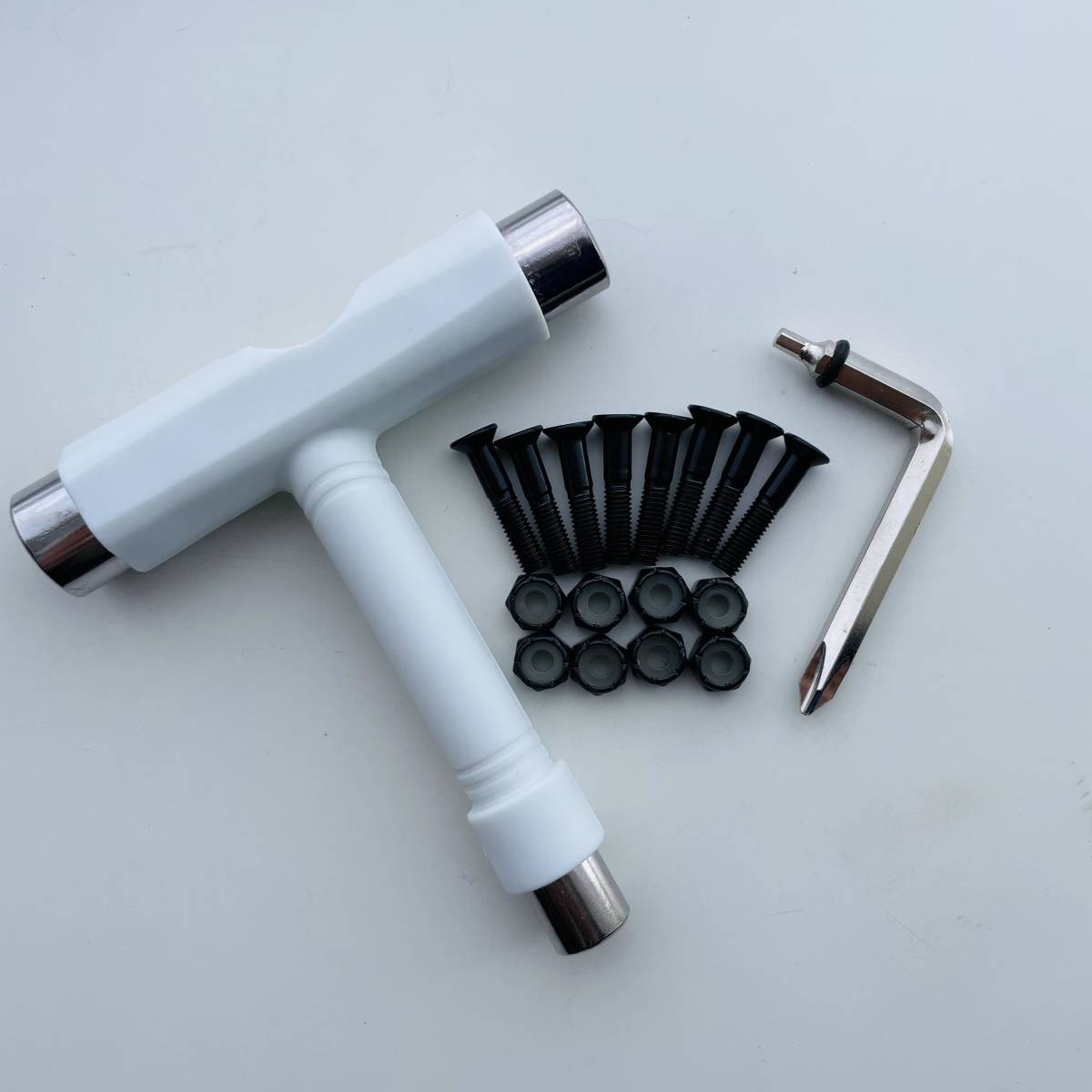 スケートボード Tツール+6角ヘッド 1インチ ビスセット Tレンチ 工具 組立 修理 白色